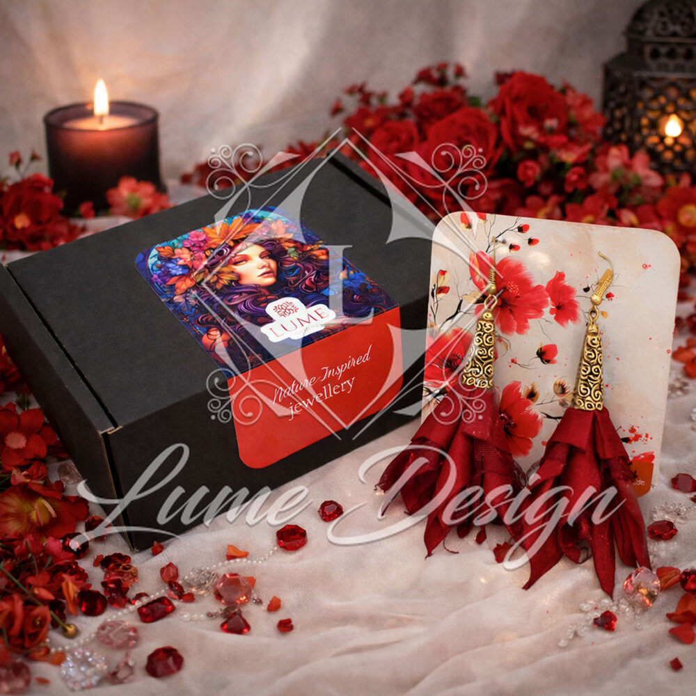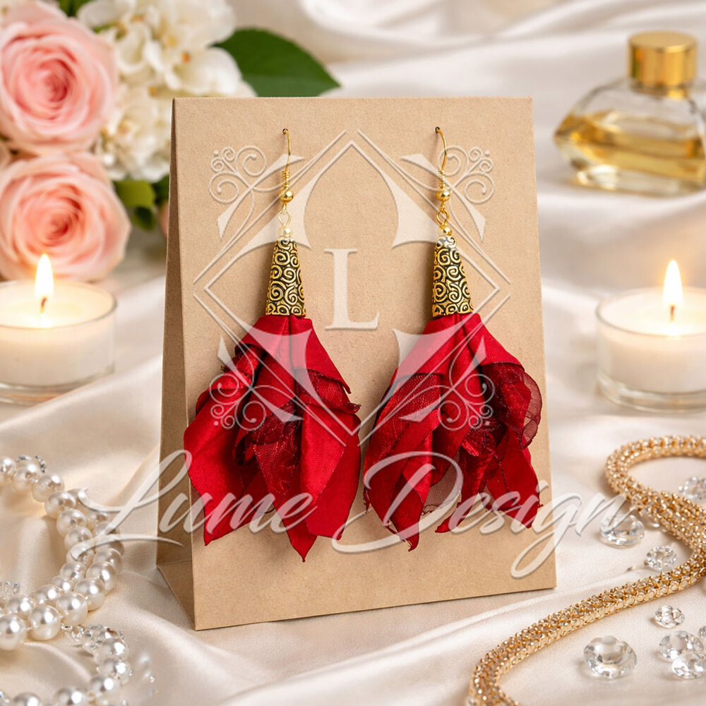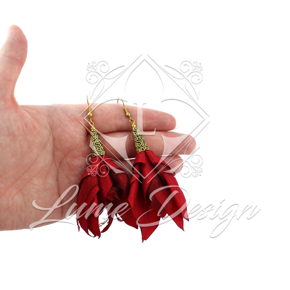 Długie Kolczyki Kwiaty Czerwone Gothic Witchy Wiszące
