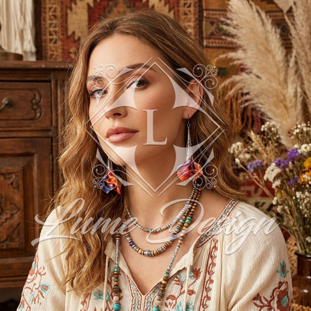 Długie Kolczyki Kwiaty – Unikatowy Multikolor