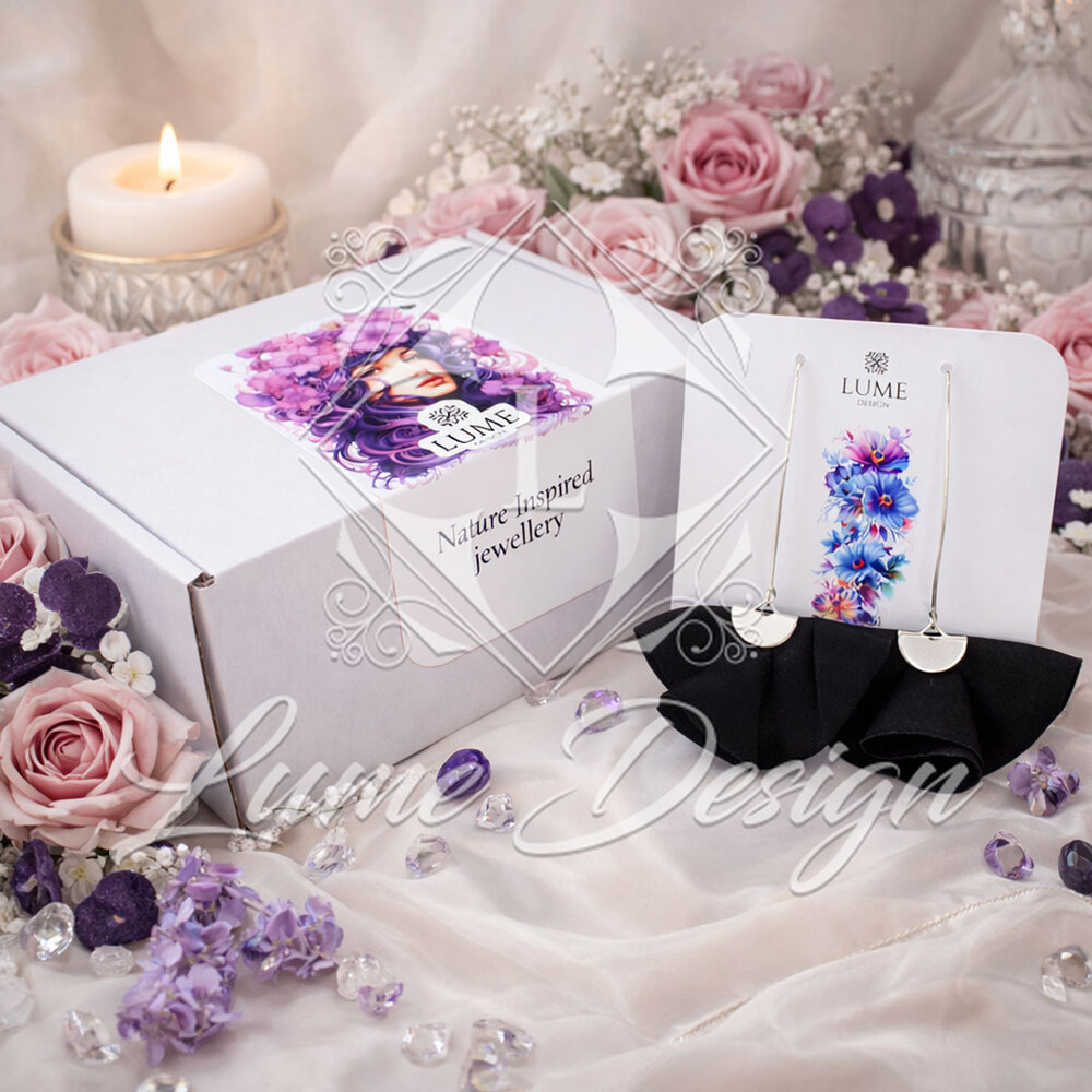 Biżuteria jest umieszczona na sztywnej karcie, która stabilizuje kolczyki i zapewnia ich bezpieczną ekspozycję. Całość zabezpieczona jest przezroczystą powłoką ochronną, dzięki czemu produkt dociera do Ciebie w nienaruszonym stanie, gotowy do dopełnienia Twojej stylizacji.