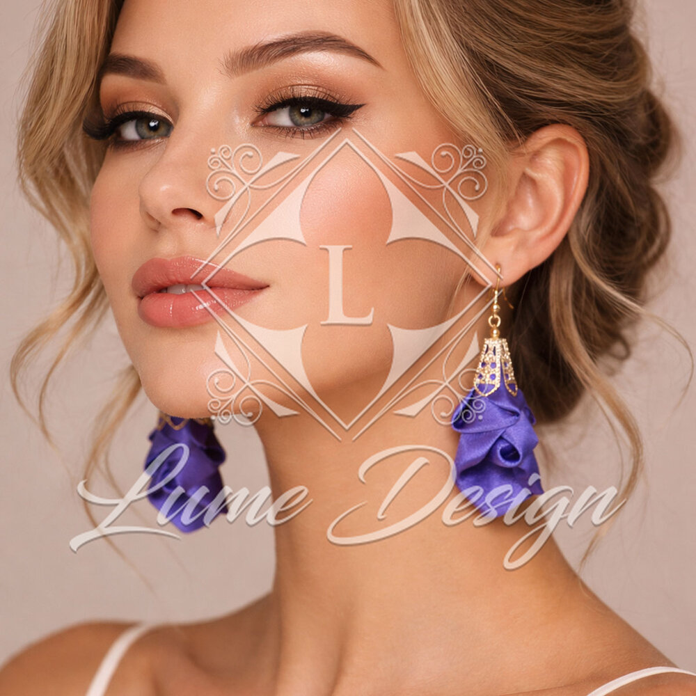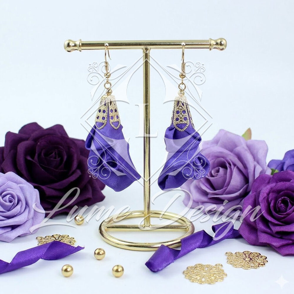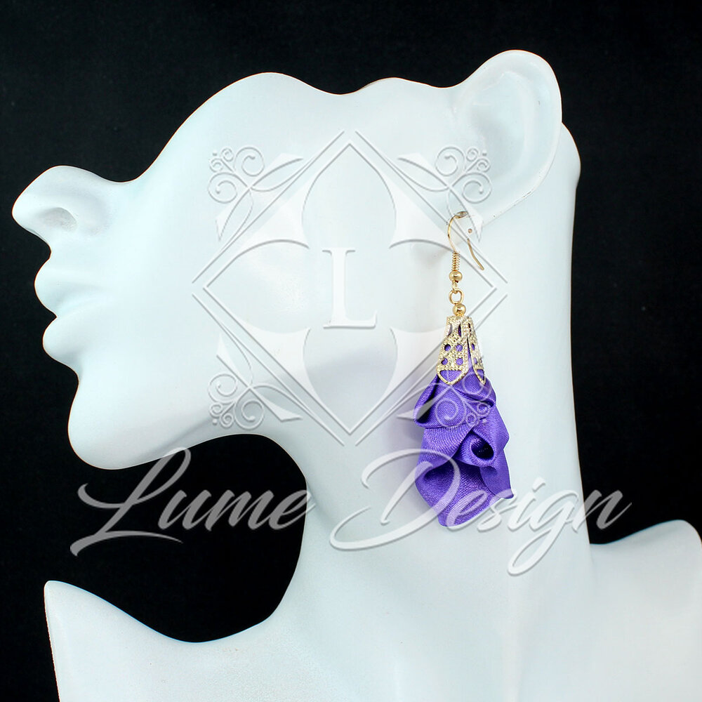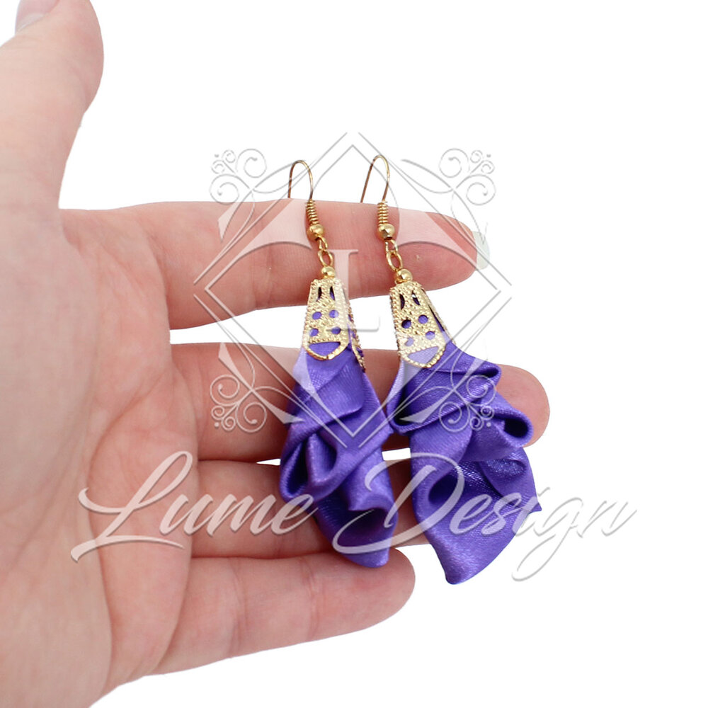 Ręcznie wykonane kolczyki z lekkiej, delikatnej tkaniny.