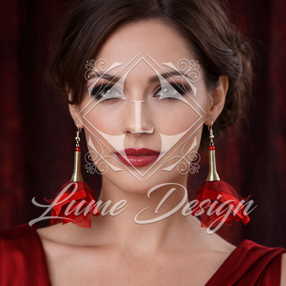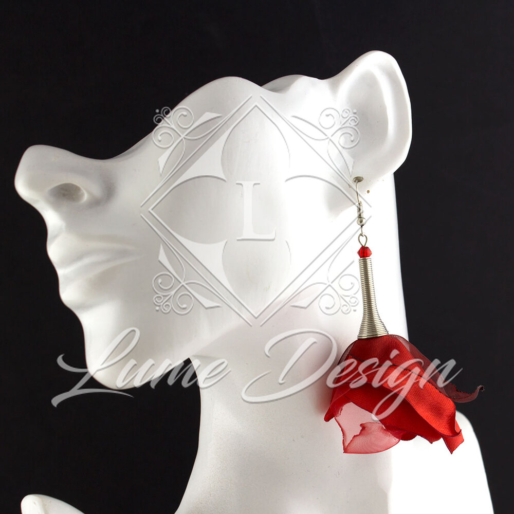 Kolczyki Wiszące Kwiaty Materiałowe Czerwone Flamenco Lekkie