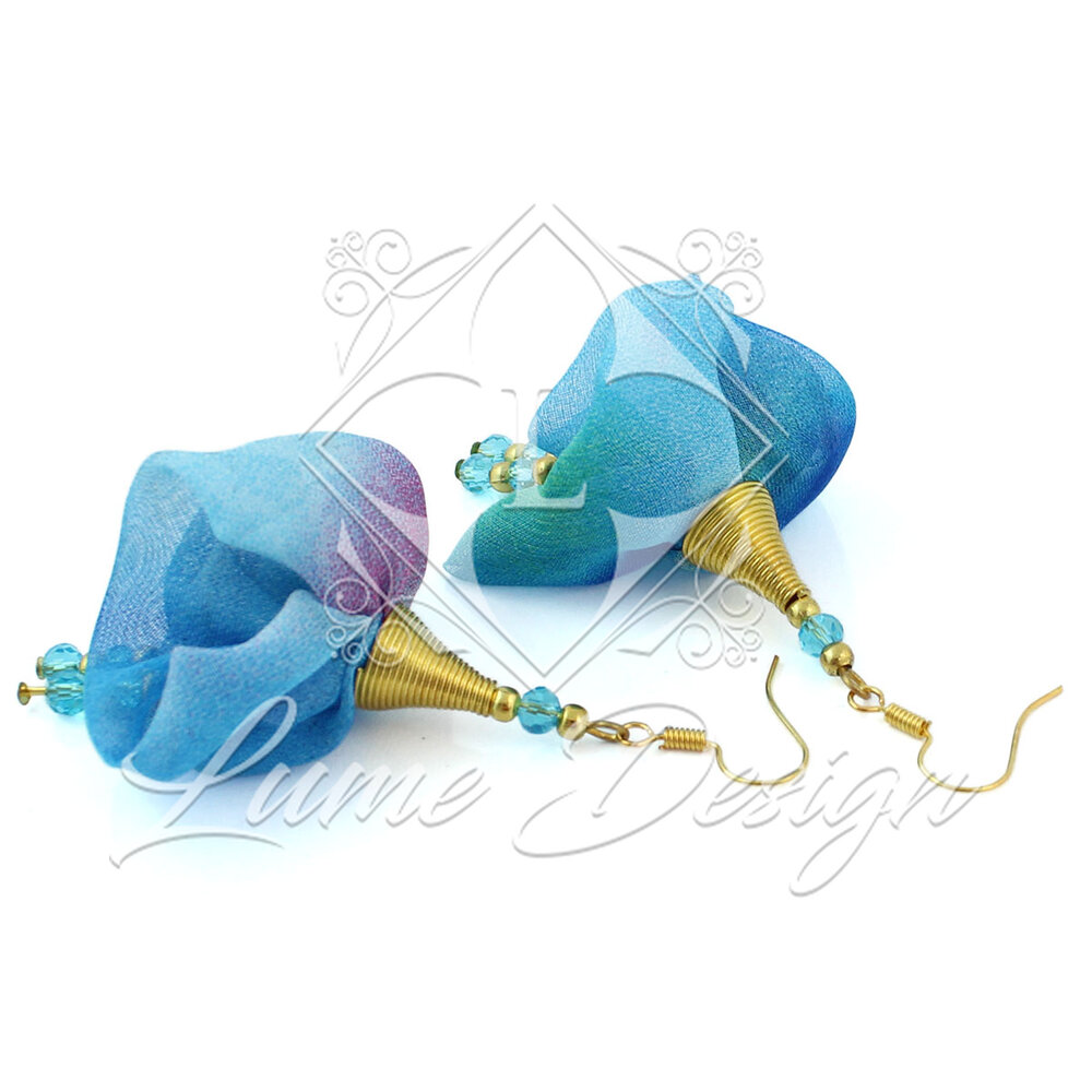 Kolczyki Kwiaty Niebieskie Multikolor Kryształki – Lume Design
