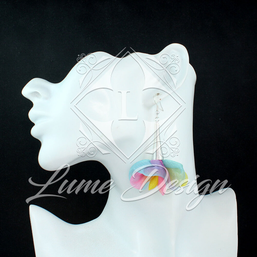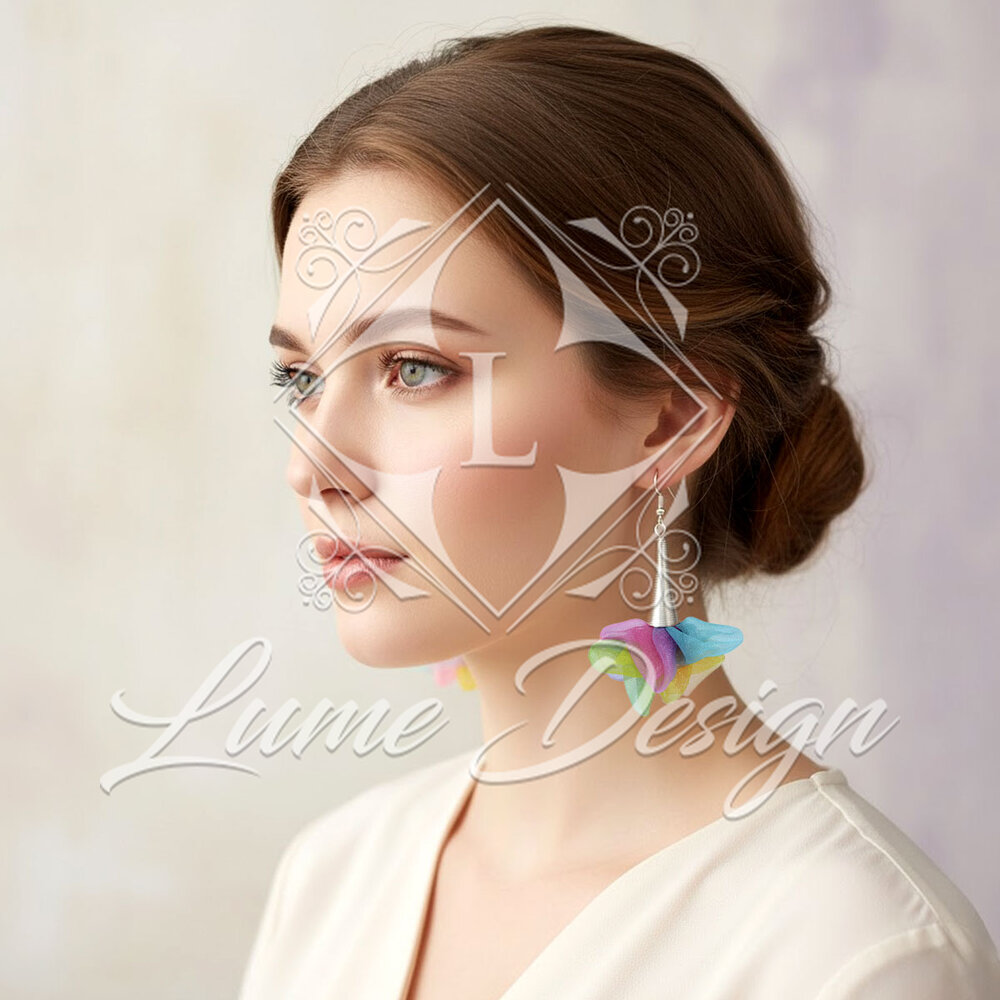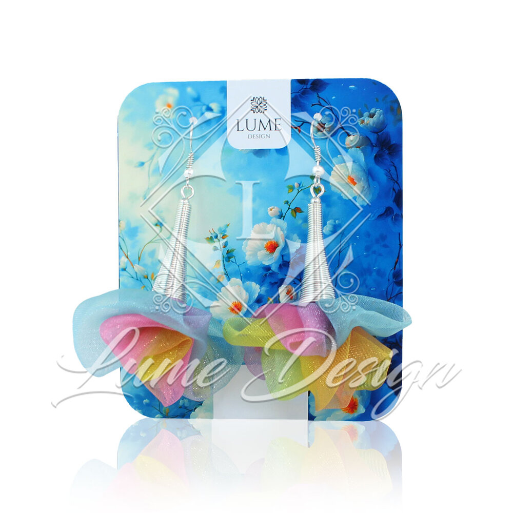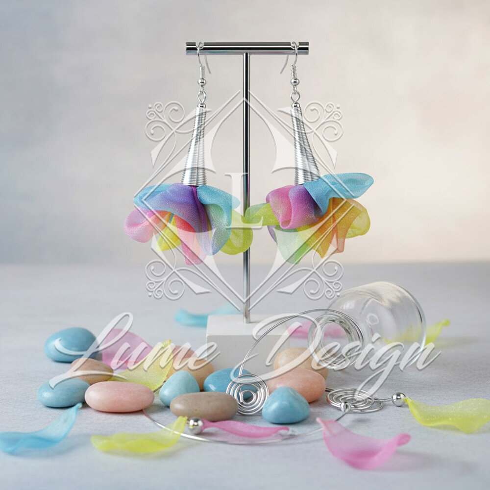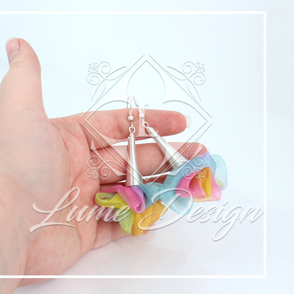 Kolczyki wiszące tęczowe z tkaniny kwiaty boho lekkie kolorowe długie