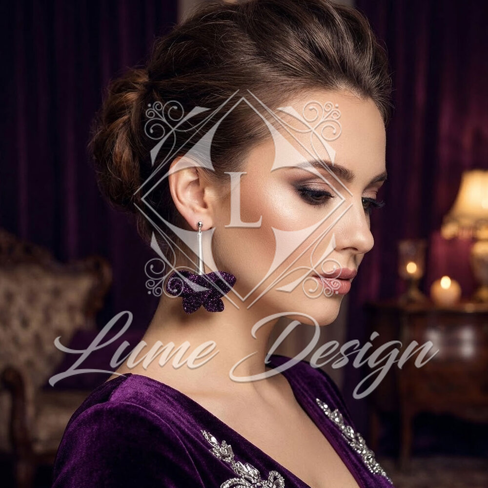 Lekkie, błyszczące kolczyki w głębokim fiolecie, które pięknie pracują w ruchu.