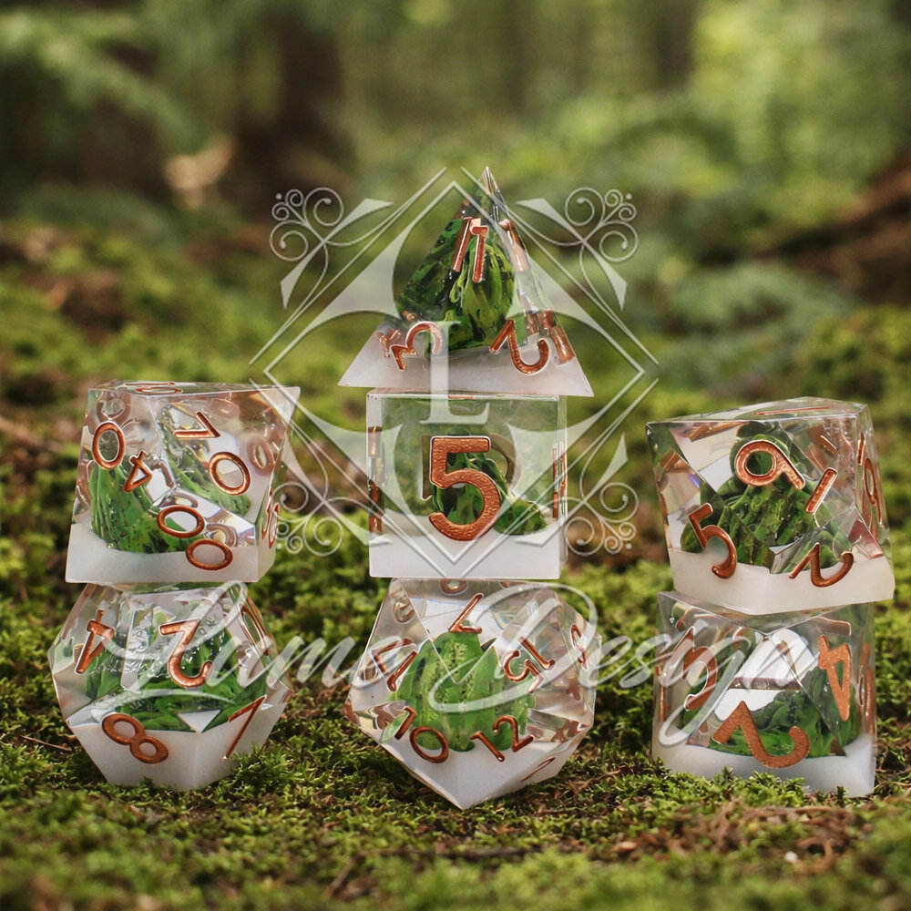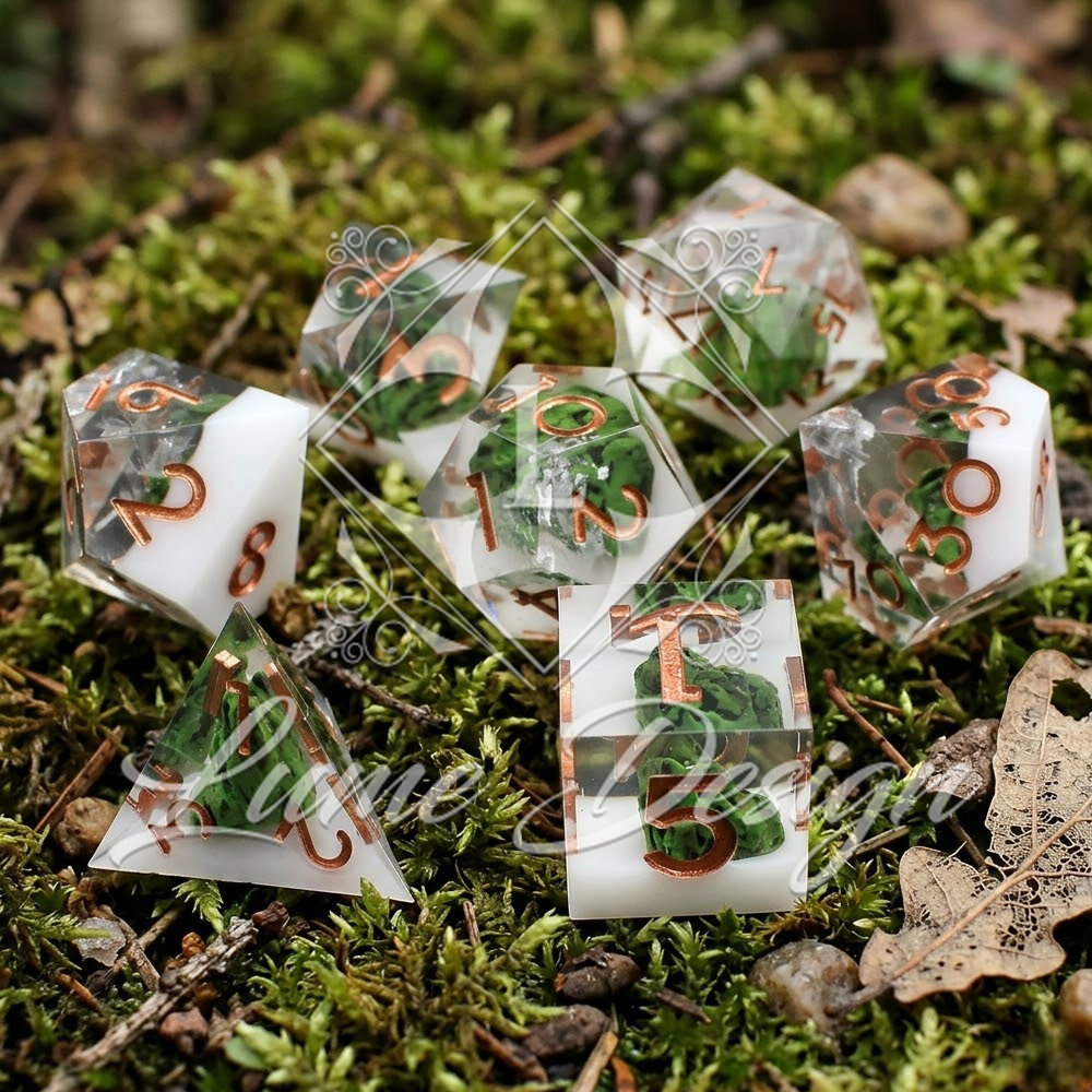 Kości RPG Epoksydowe Ostre Mgła Mech Las Wielościenne Prezent DnD