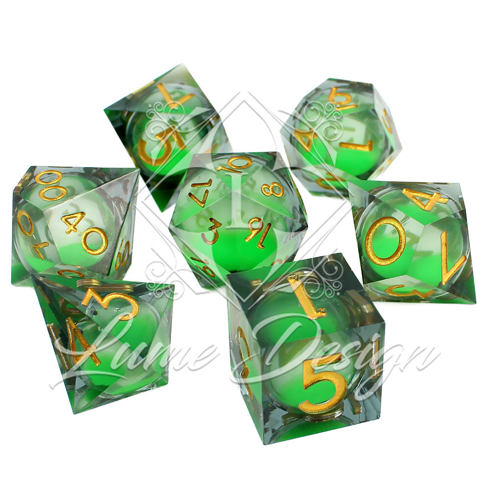 Kości RPG Epoksydowe Płynne Ostre Zielone Dnd Zestaw 7 Prezent