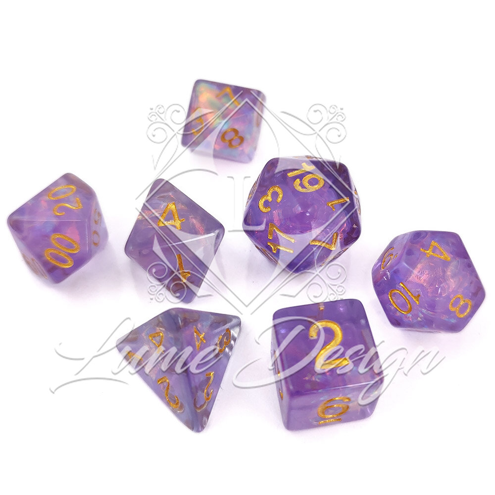 Kości RPG Fioletowe Holograficzne Zestaw DnD Akryl