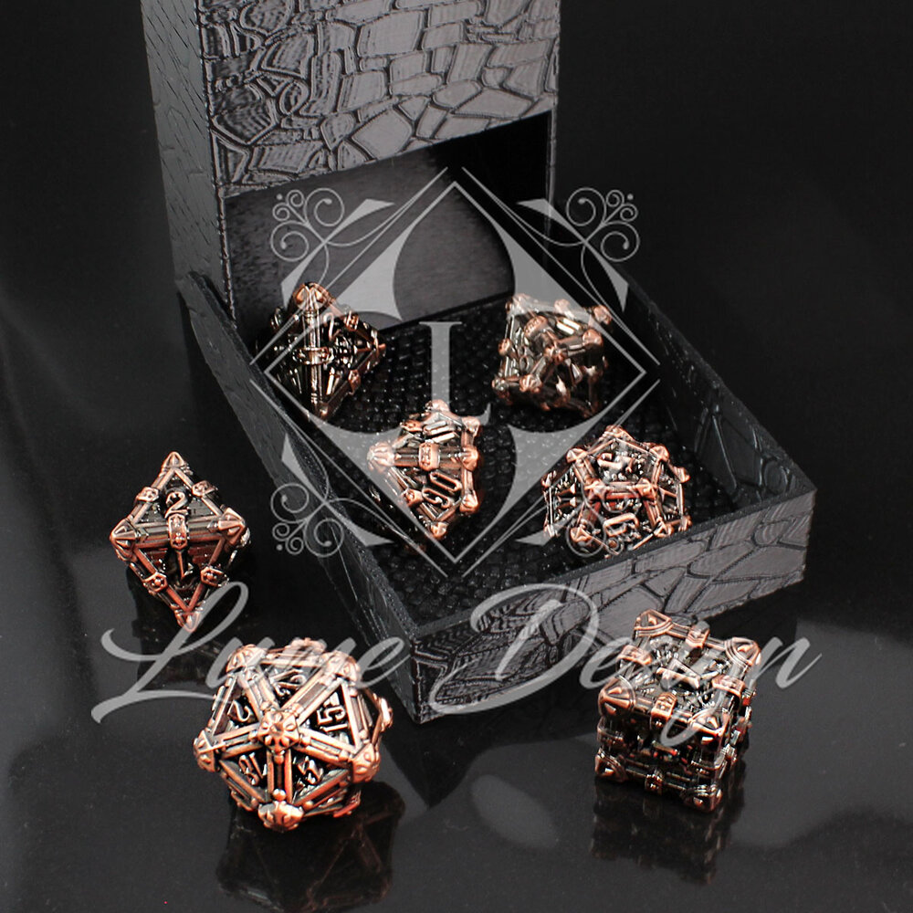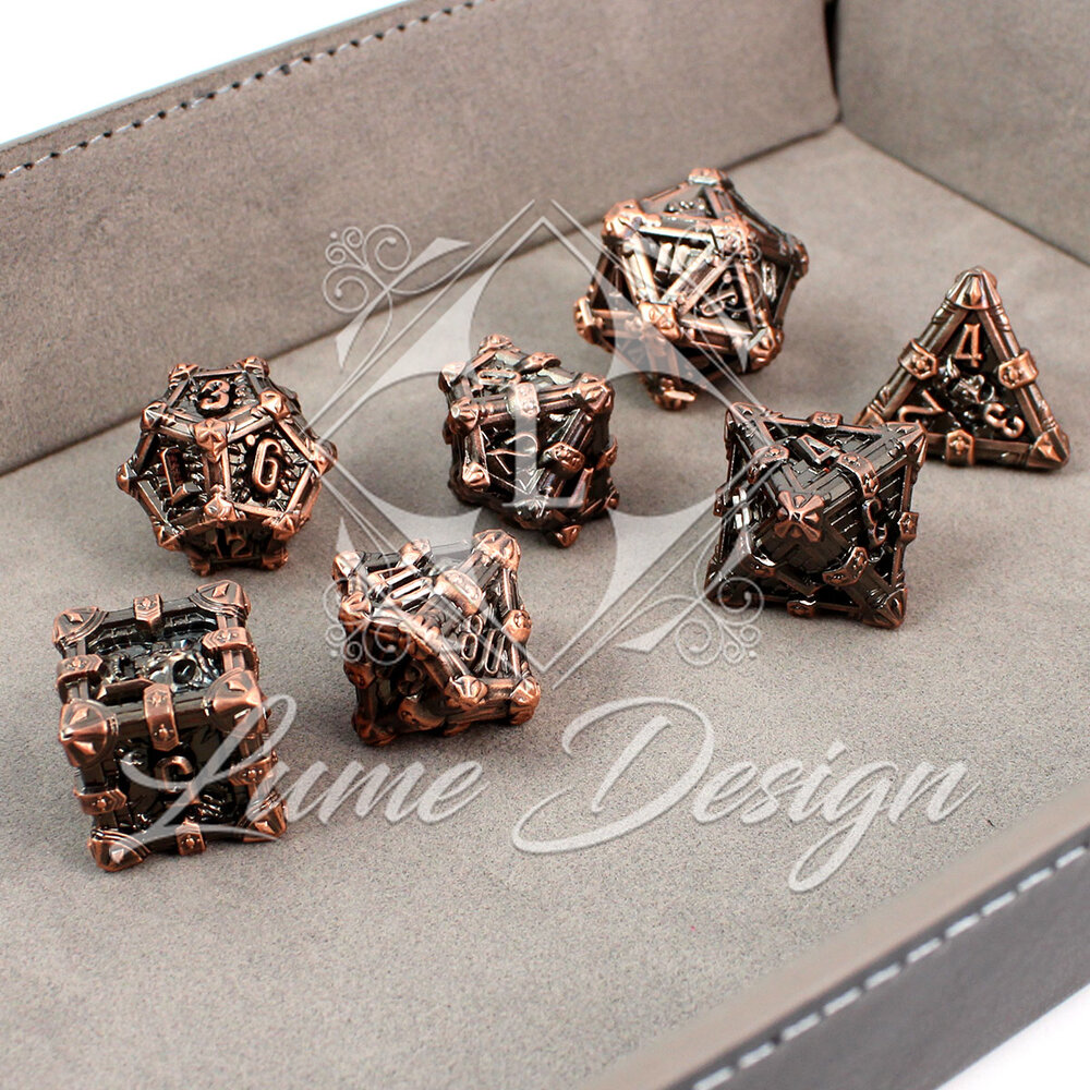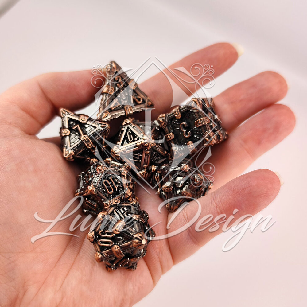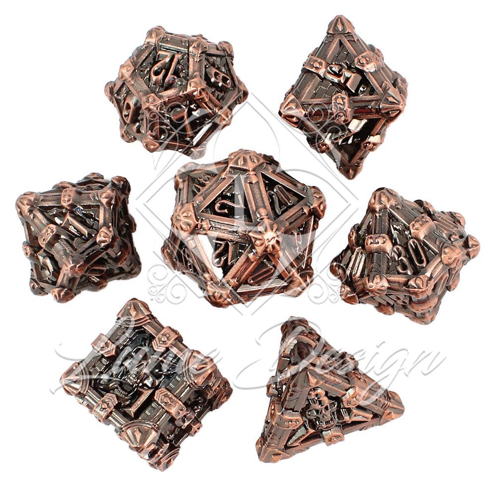 Kości RPG Metalowe Ciężkie Miedź Czaszki Zestaw DnD komplet kostki