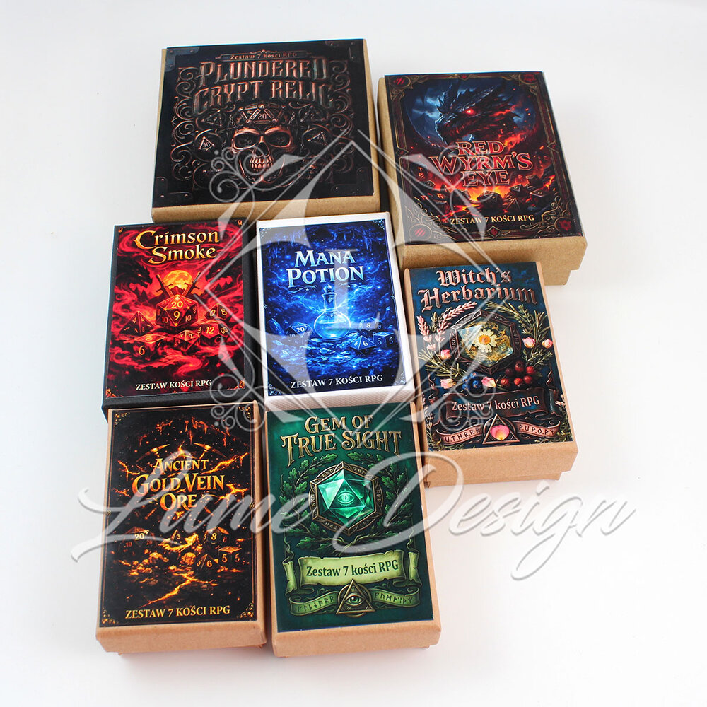 Zestaw pakowany jest w pudełko kartonik – kolor i wzór dobierany tak, by pasował do estetyki kości. Zestaw jest od razu gotowy na prezent.