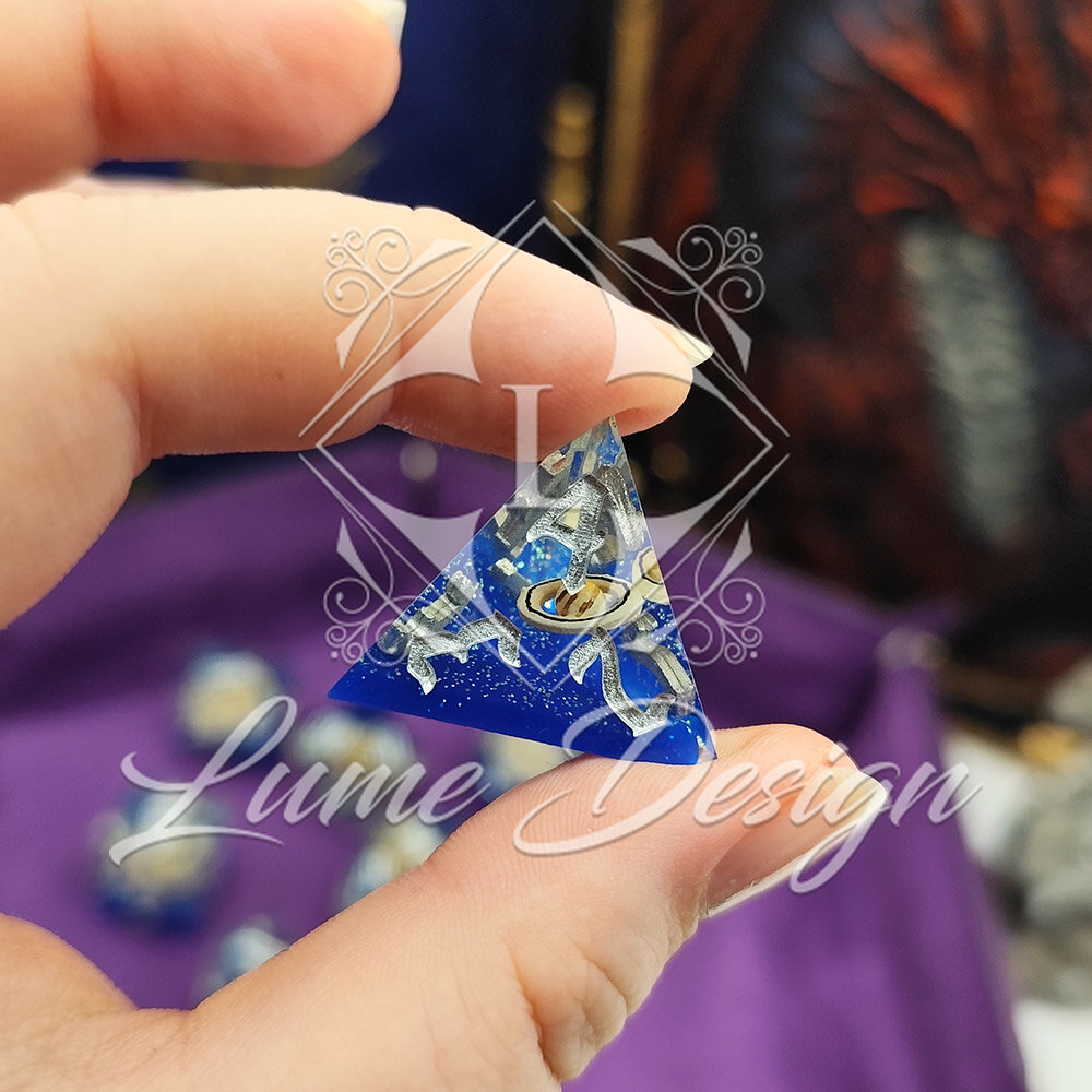 Zestaw ten to hołd dla nieskończoności kosmosu. Trzymając te kości w dłoni, masz wrażenie, że spoglądasz przez iluminator statku kosmicznego na nieznane układy planetarne. Idealnie oddają klimat podróży międzygwiezdnych, tajemnej wiedzy astronomicznej i magii grawitacji.