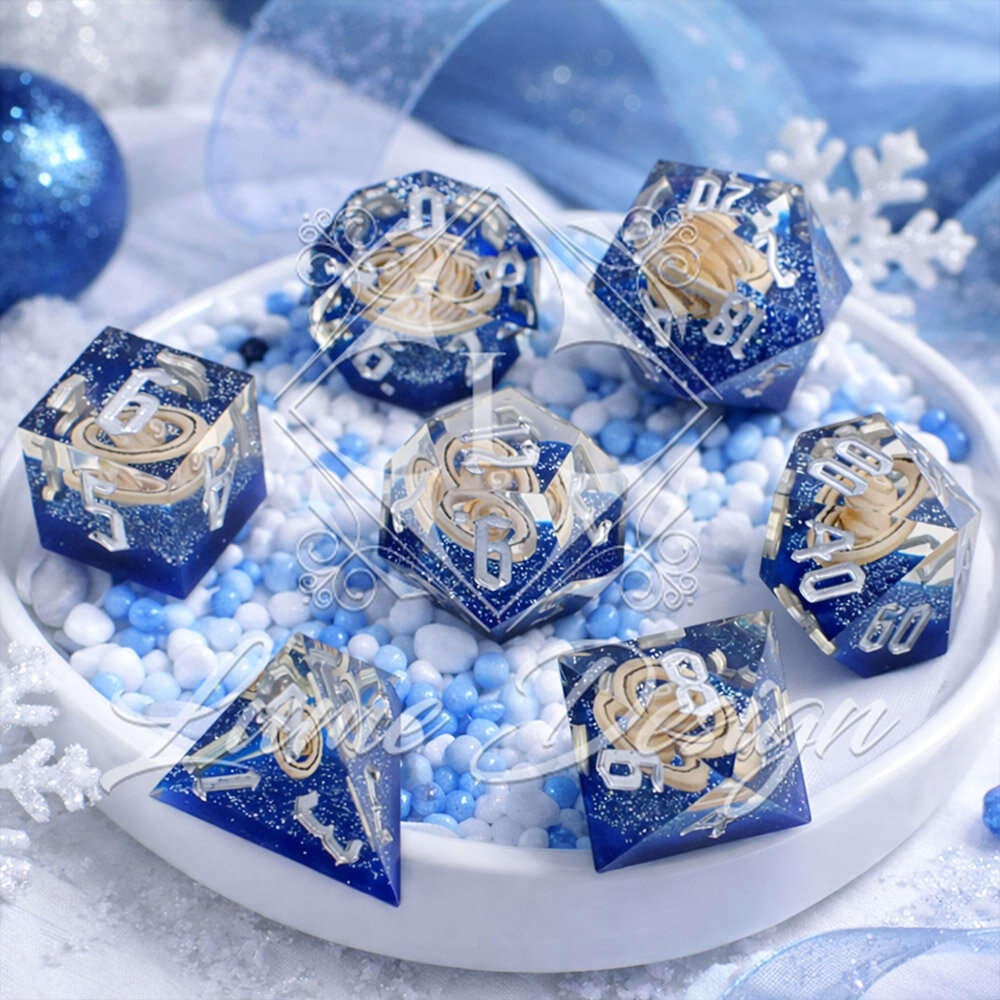 • Efekt: Prawdziwe dzieło sztuki w miniaturze. Wewnątrz każdej kości unosi się trójwymiarowy model planety z pierścieniami (przypominającej Saturna). Dno kości wypełnione jest głębokim granatem z mieniącym się brokatem, imitującym rozgwieżdżoną galaktykę, podczas gdy górna część jest transparentna, co pozwala podziwiać orbitującą planetę.
