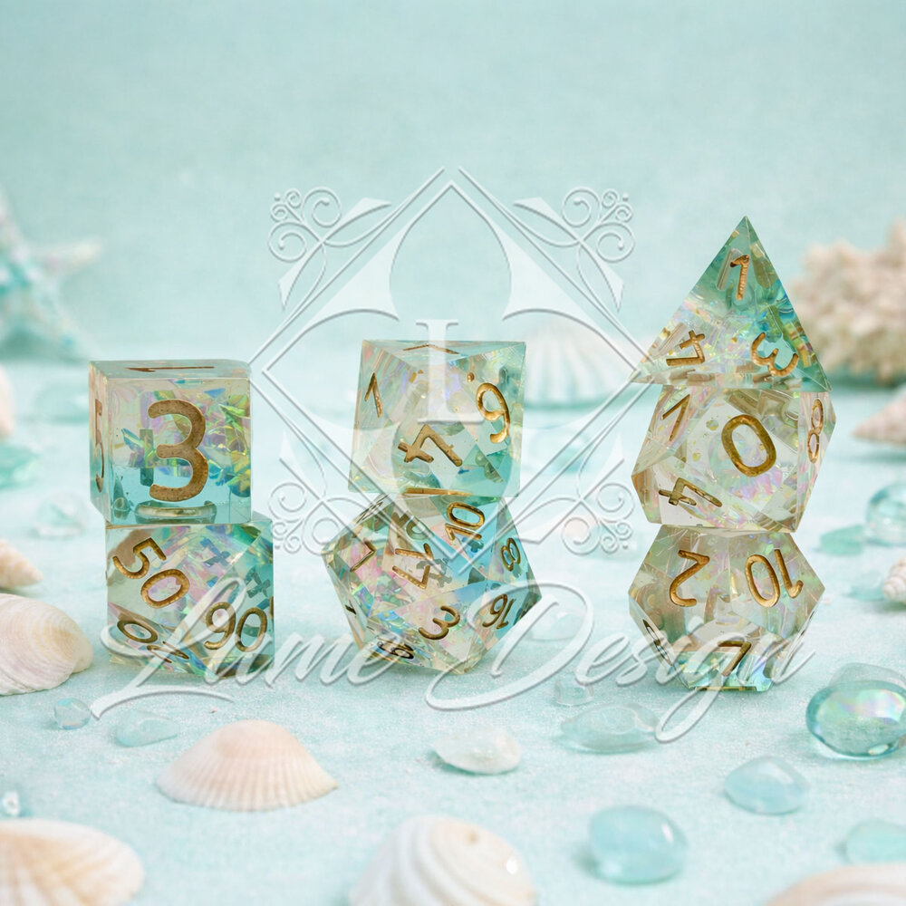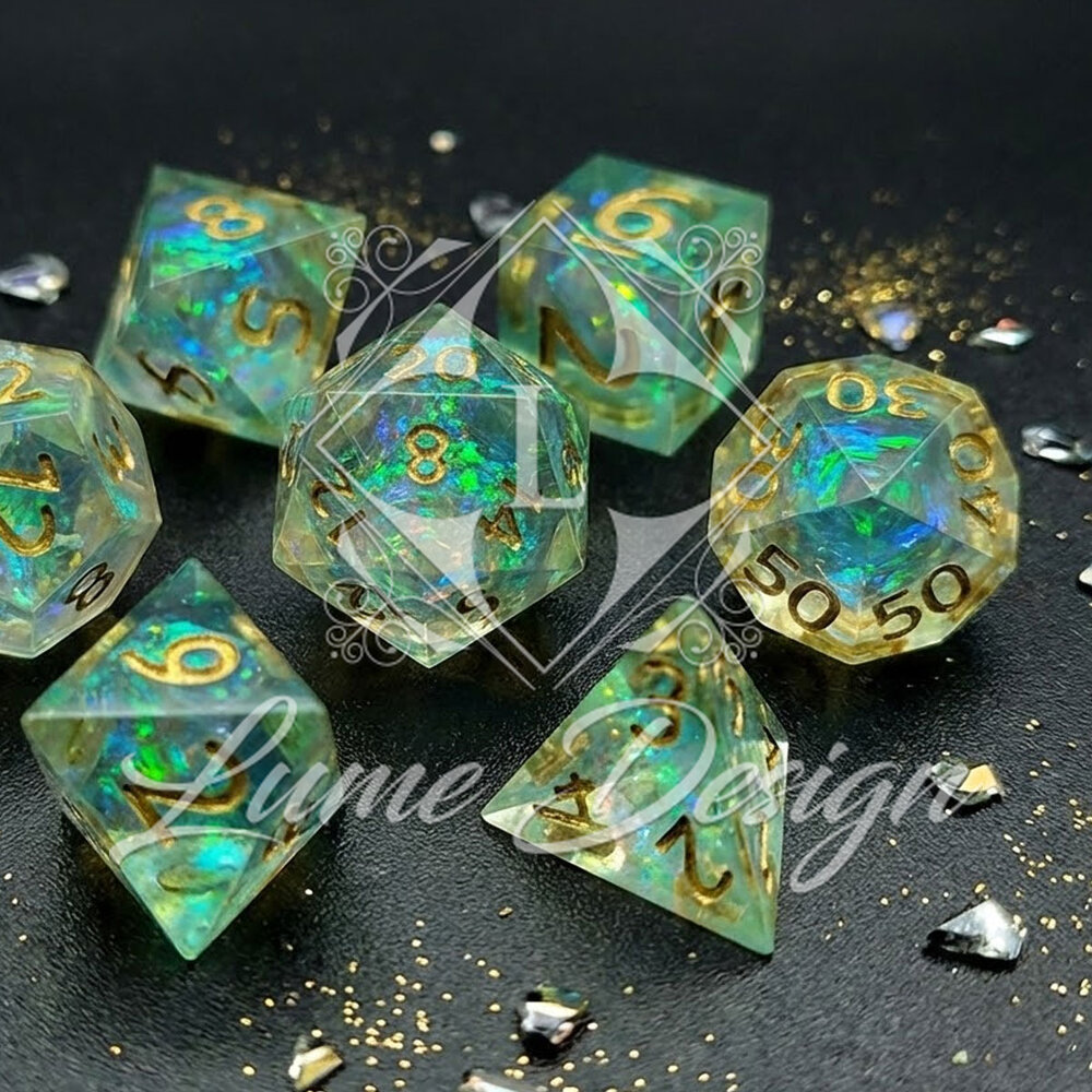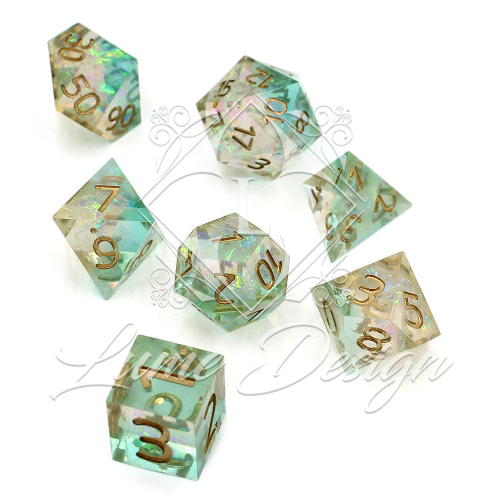 Kości RPG Sharp Edge Żywica Miętowe Holograficzne Złote