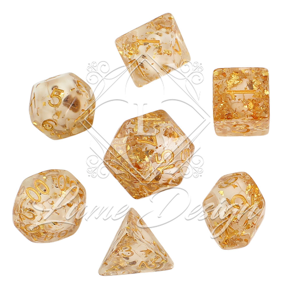 Efekt i Kolorystyka: Transparentna i mleczno-biała żywica wymieszana z pięknie mieniącymi się, złotymi drobinkami.