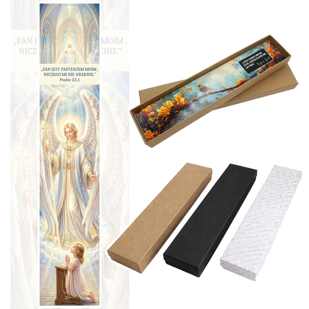 Zakładka zapakowana jest w ozdobne pudełko z wkładką, na której znajduje się dedykacja z religijnym przesłaniem. To idealna, gotowa do wręczenia pamiątka o charakterze chrześcijańskim.