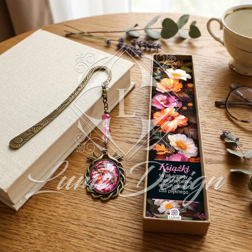 Każda zakładka zapakowana jest w ozdobne pudełko z wkładką, na której znajduje się piękny cytat.