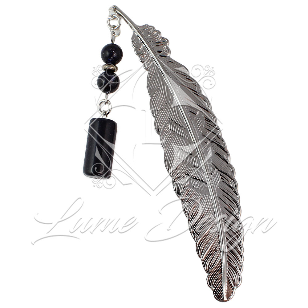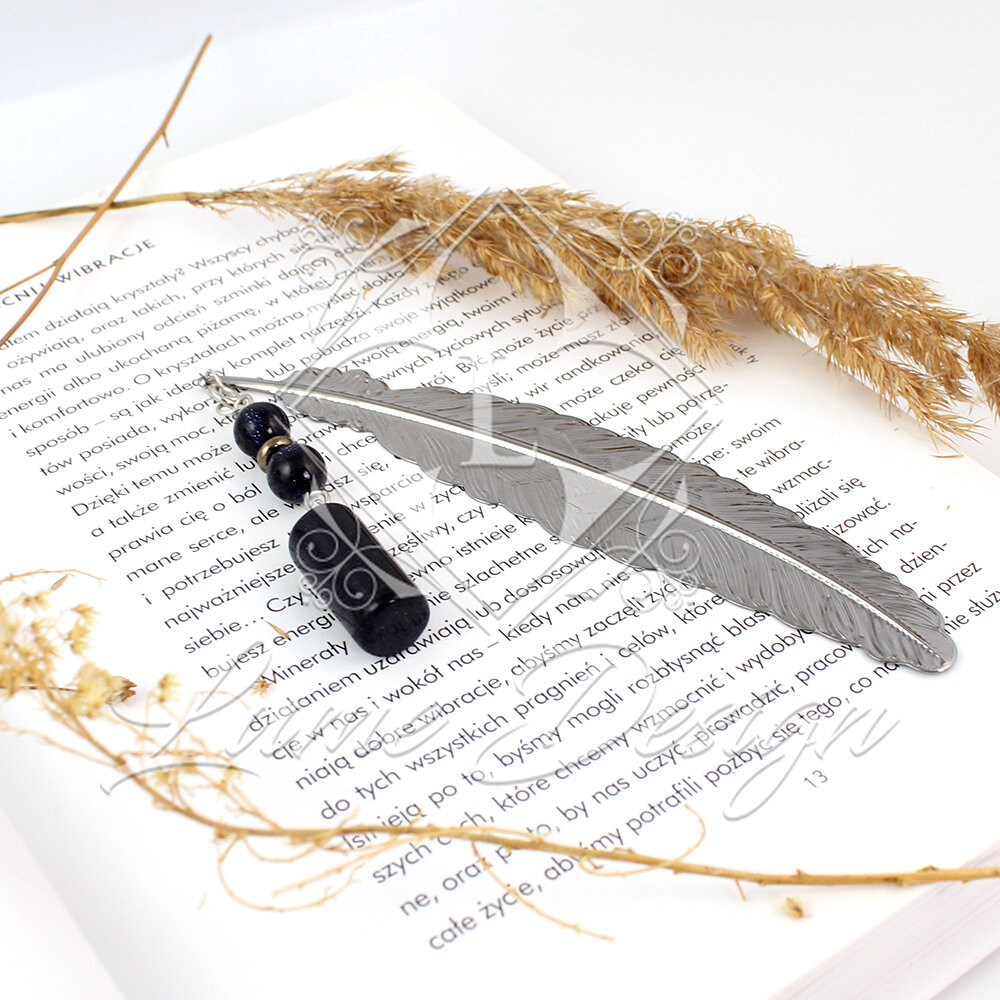 Wsuń ciemny, metalowy element między strony książki lub notesu. Ozdobna zawieszka z kamieniem pozostaje na zewnątrz, ułatwiając odnalezienie ostatnio czytanej strony.