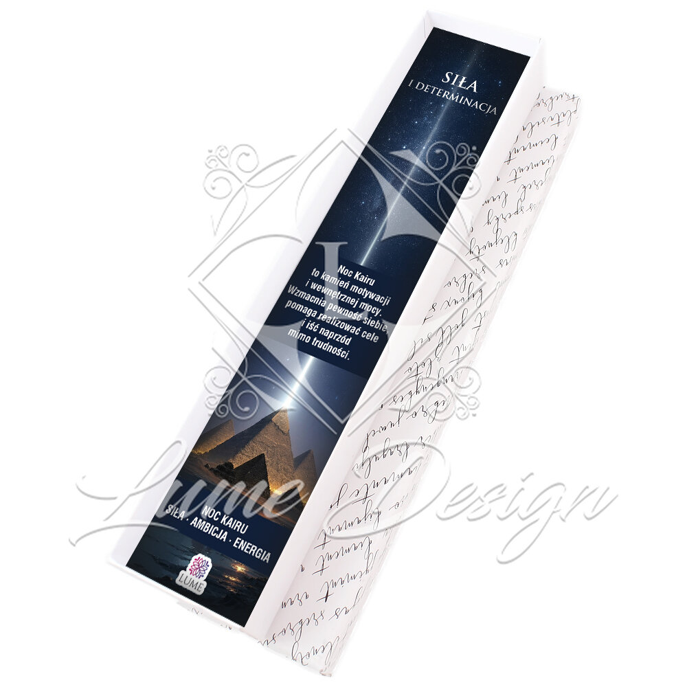 "Siła i determinacja. Noc kairu to kamień motywacji i wewnętrznej mocy. Wzmacnia pewność siebie, pomaga realizować cele i iść naprzód mimo trudności."
