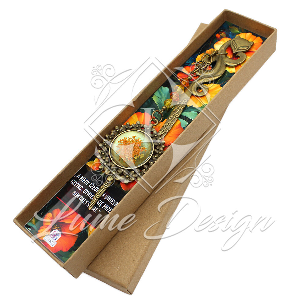 Każda zakładka jest zapakowana w ozdobne pudełko z wkładką, na której znajduje się piękny cytat. Jeśli chcesz, mogę zastąpić go Twoją dedykacją lub krótkim tekstem, co sprawi, że zakładka będzie jeszcze bardziej osobistym upominkiem.