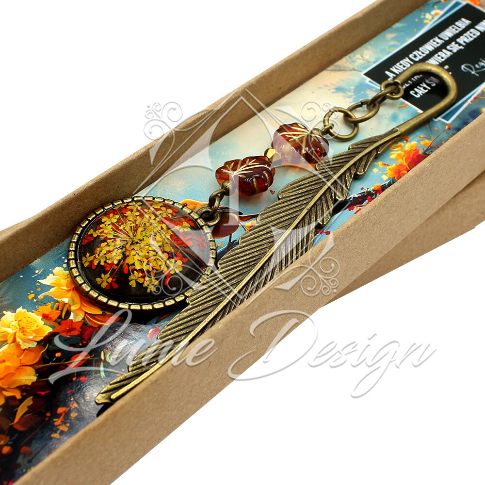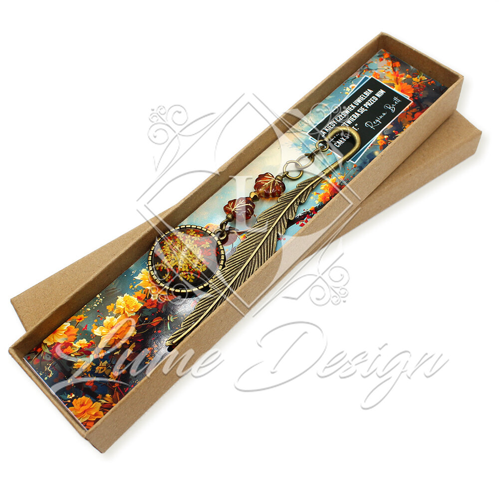 Każda zakładka jest zapakowana w ozdobne pudełko z wkładką, na której znajduje się piękny cytat. Jeśli chcesz, mogę zastąpić go Twoją dedykacją lub krótkim tekstem, co sprawi, że zakładka będzie jeszcze bardziej osobistym upominkiem.
