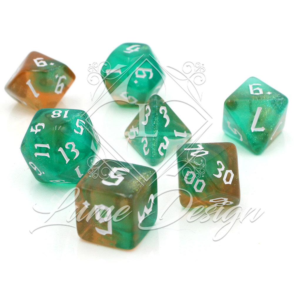 Zestaw Kości RPG Zielone Brązowe Brokat DnD