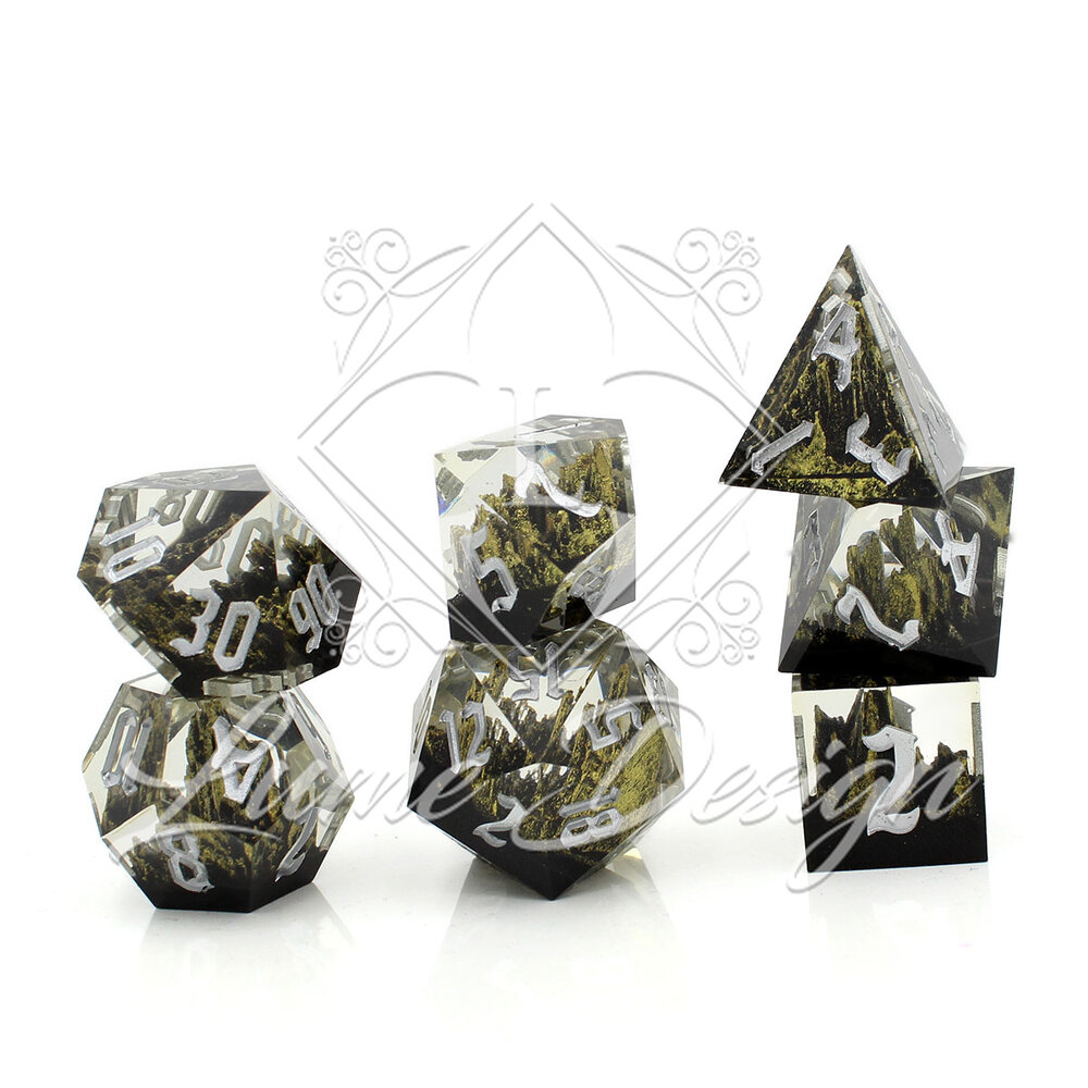Zestaw kości wielościennych RPG żywica drewno Forest ostre DnD