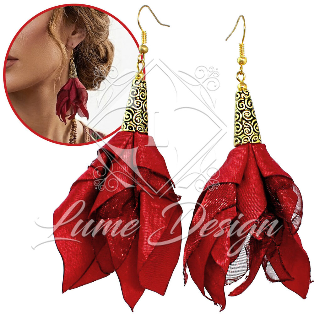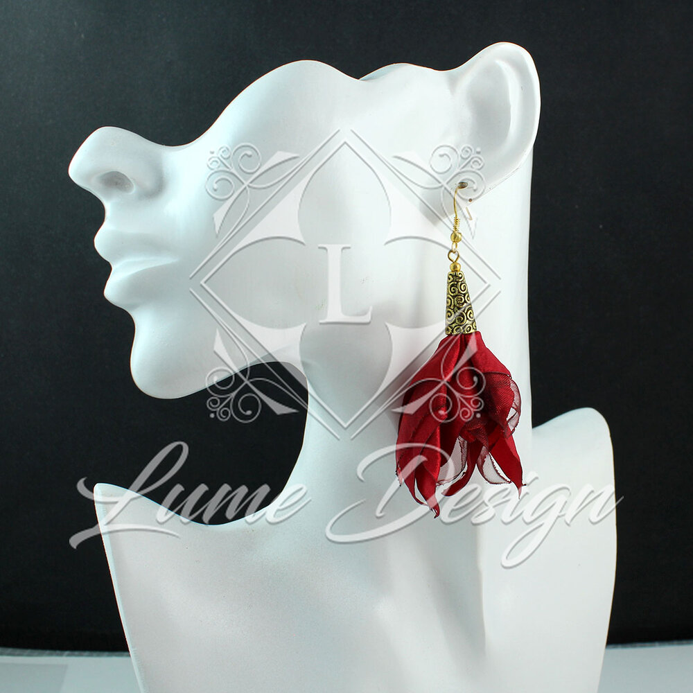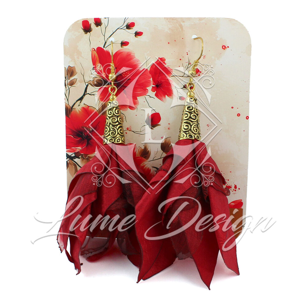 Długie kolczyki kwiaty Lume Design burgundowe czerwone antyczne złoto