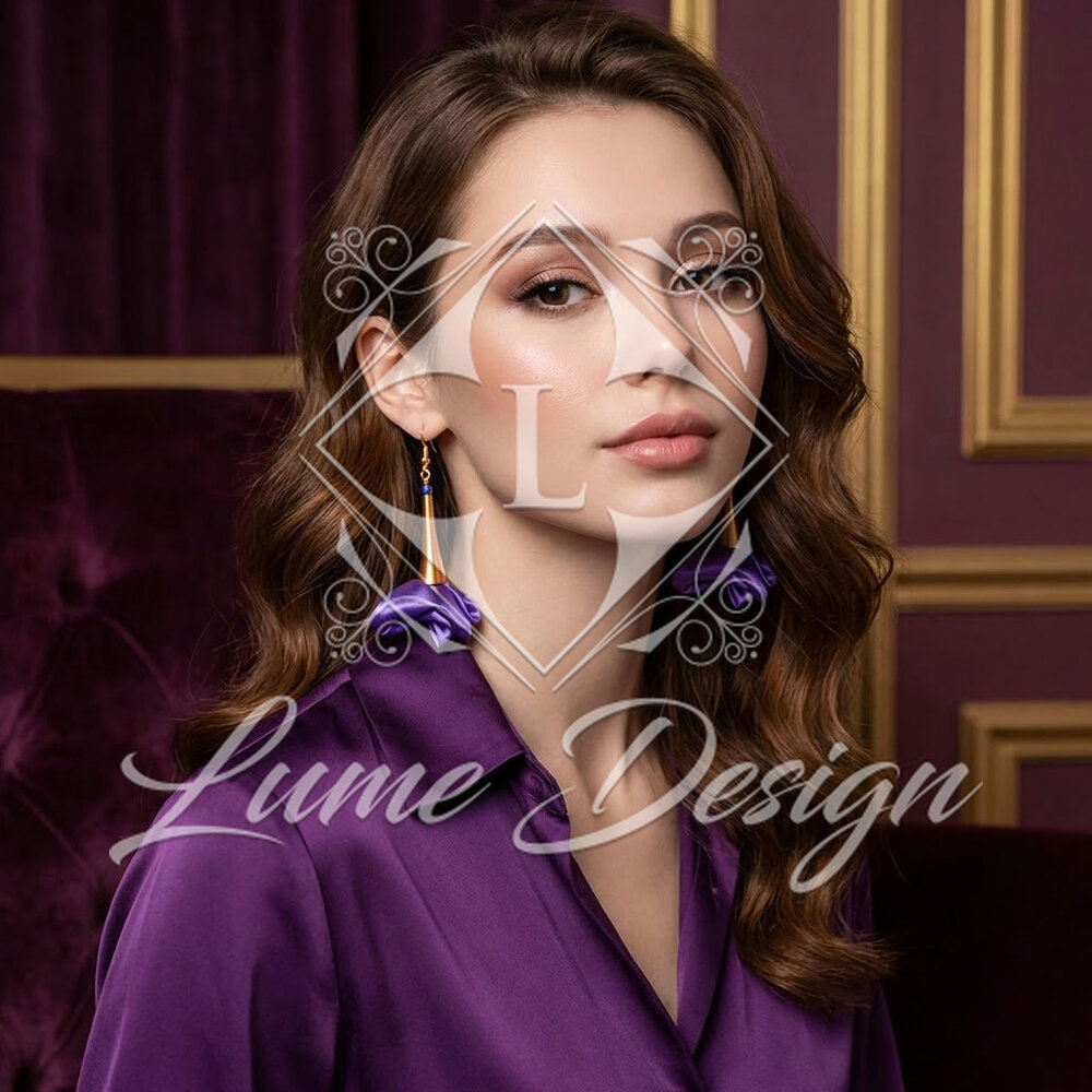 Ręcznie robiona biżuteria marki Lume Design, która zachwyca szlachetnym połyskiem satynowej tkaniny. Ten model to połączenie głębokiego odcienia fioletu z wykończeniem w kolorze KC Gold.
