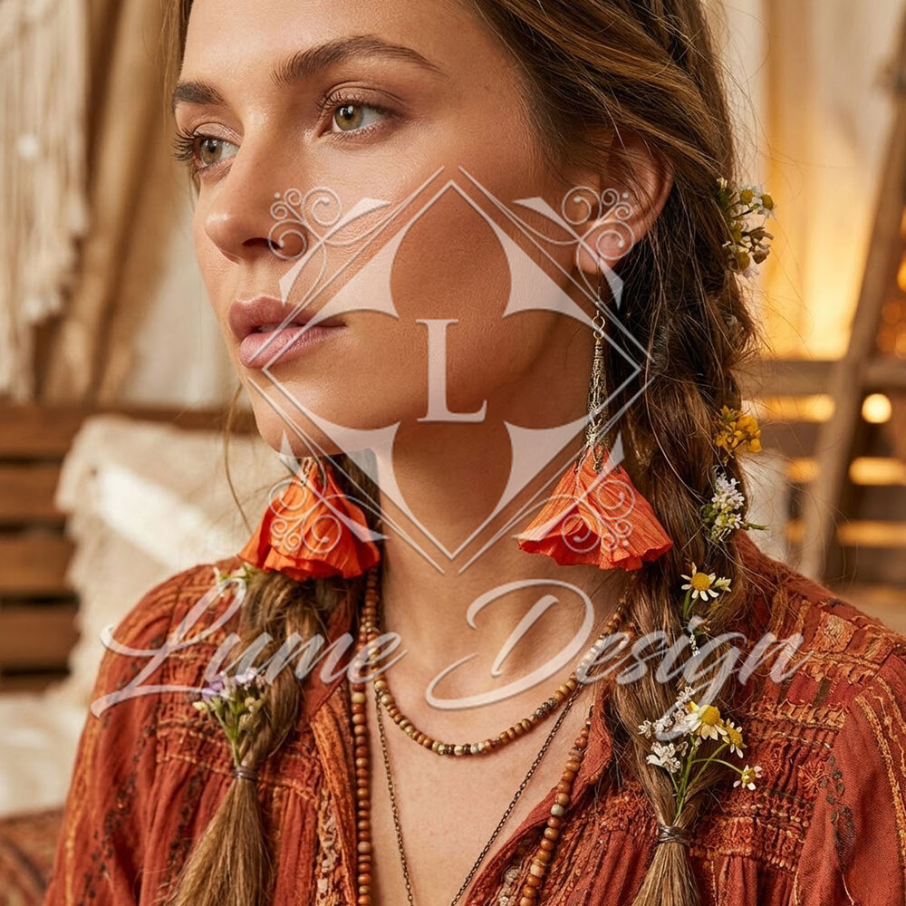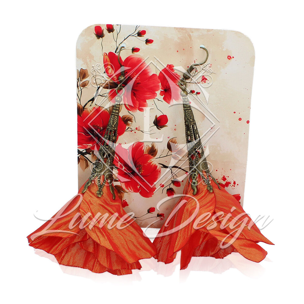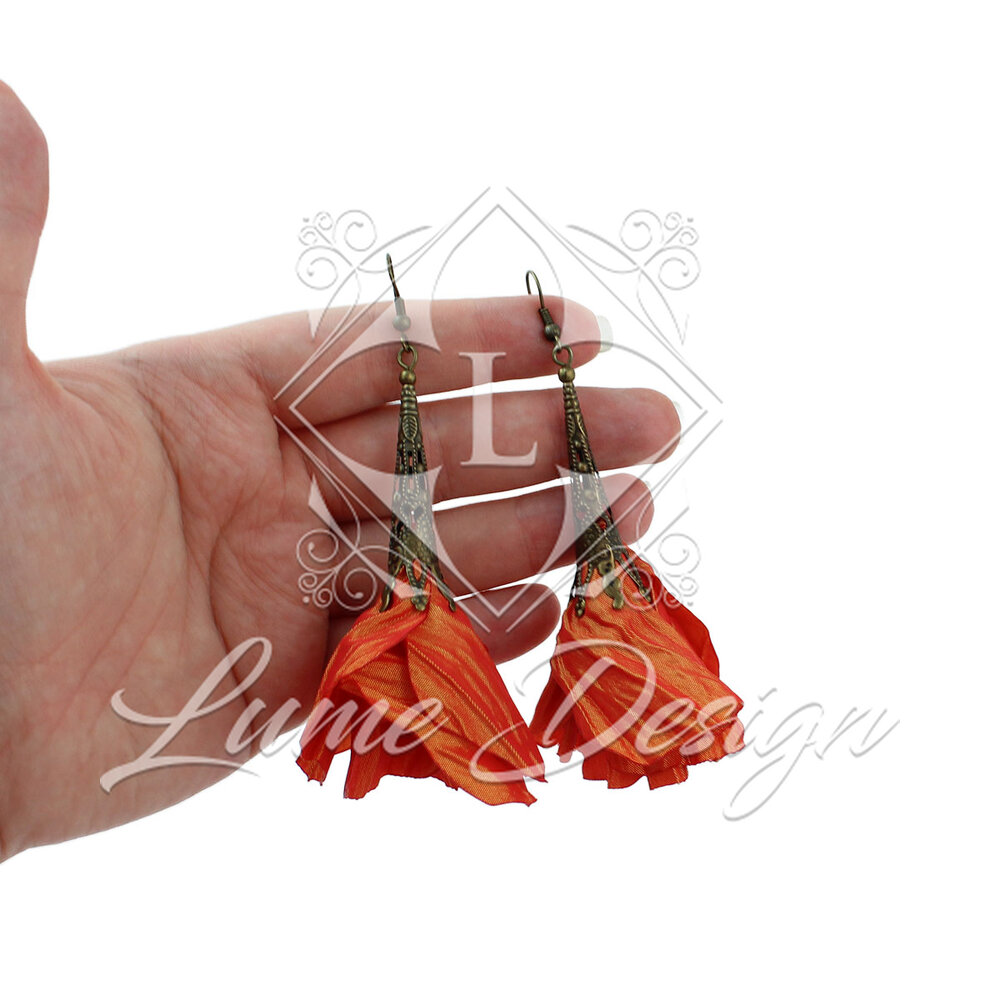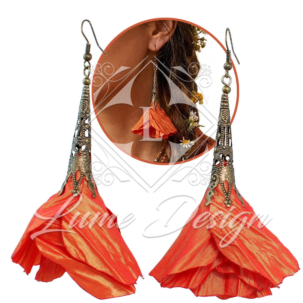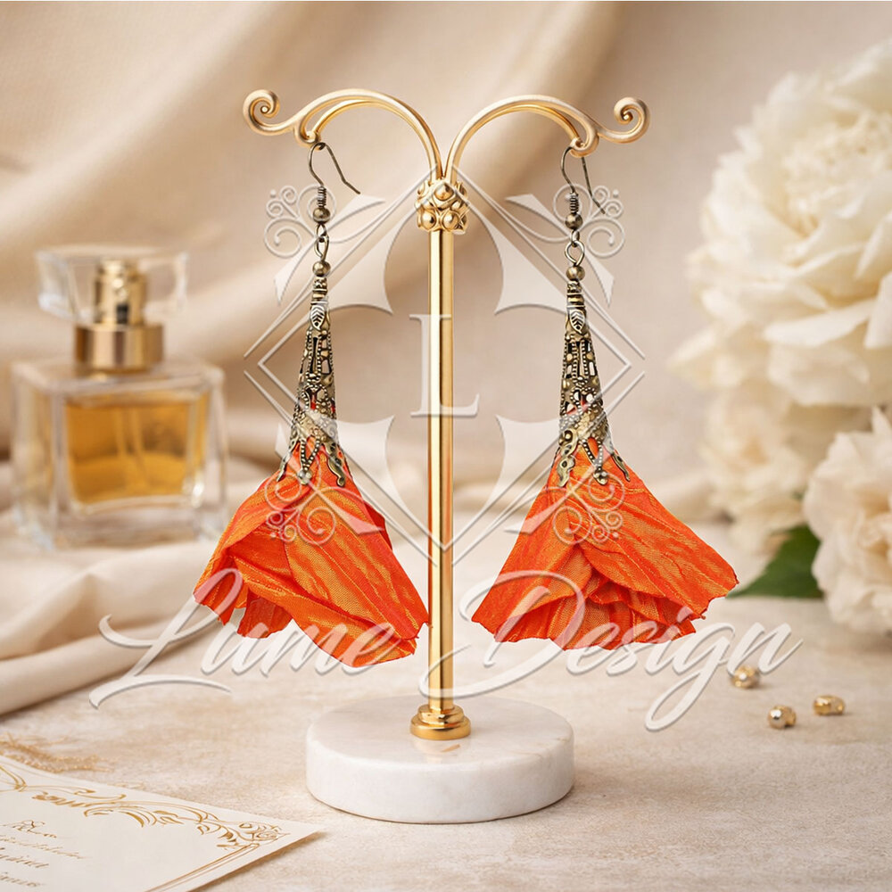 Długie Kolczyki Kwiaty – Słoneczny Pomarańcz i Antyczny Brąz