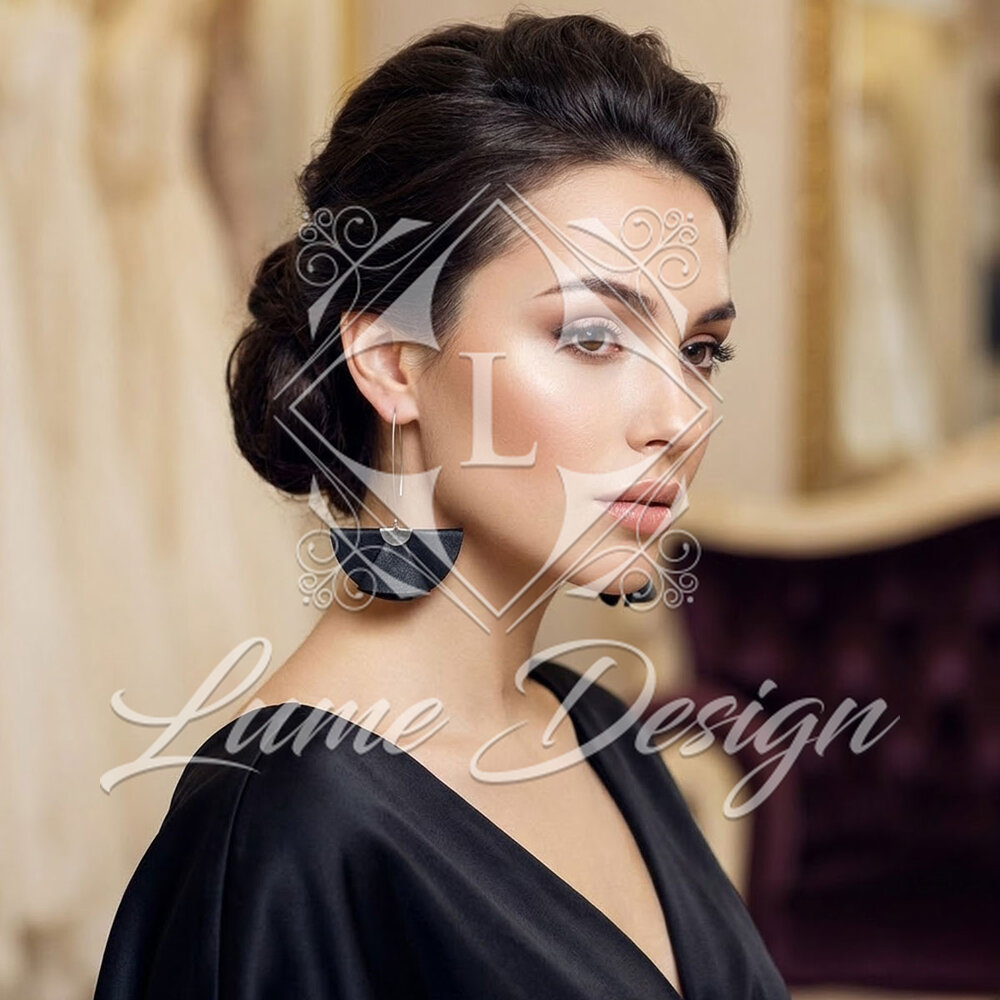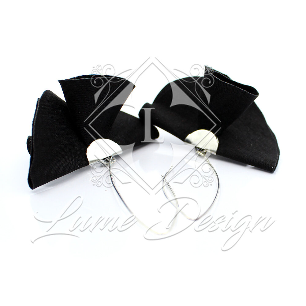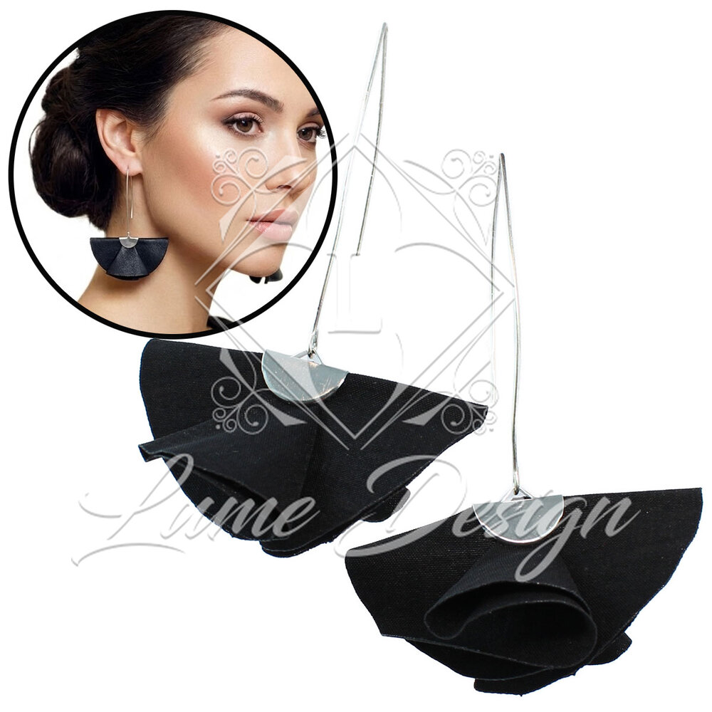 Ręcznie robiona biżuteria, która zachwyca nowoczesną formą i ponadczasową kolorystyką. Model ten charakteryzuje się unikatowym kształtem wachlarza wykonanego z czarnej tkaniny, który w połączeniu z długimi biglami typu „rybki” tworzy spektakularną, a jednocześnie lekką kompozycję.