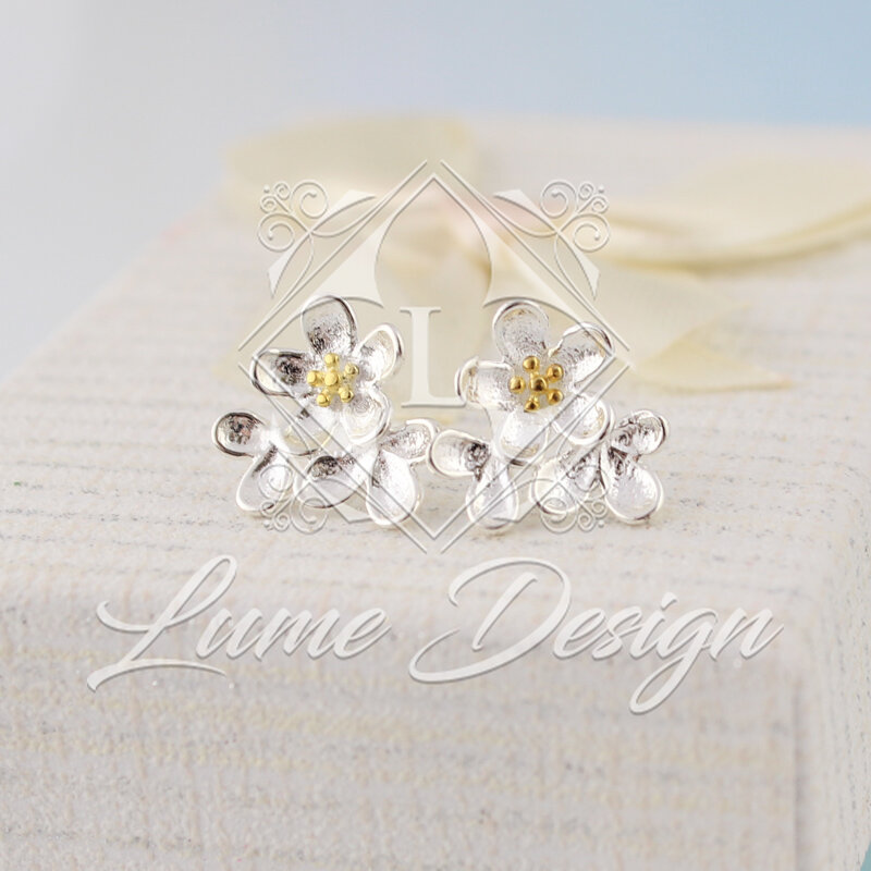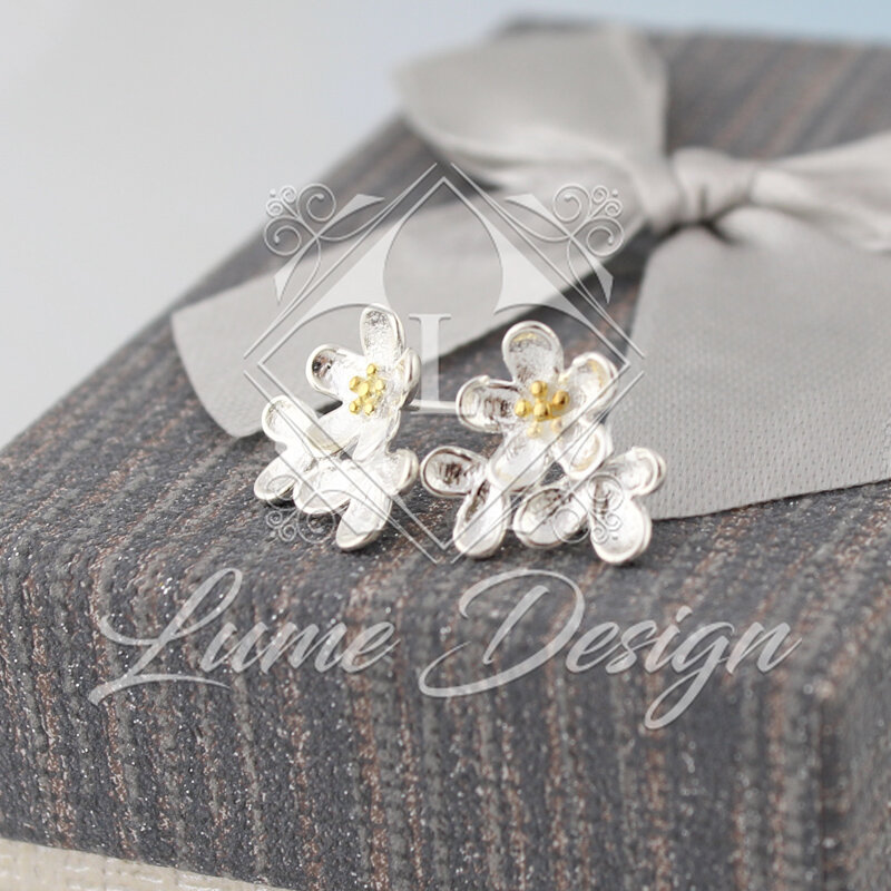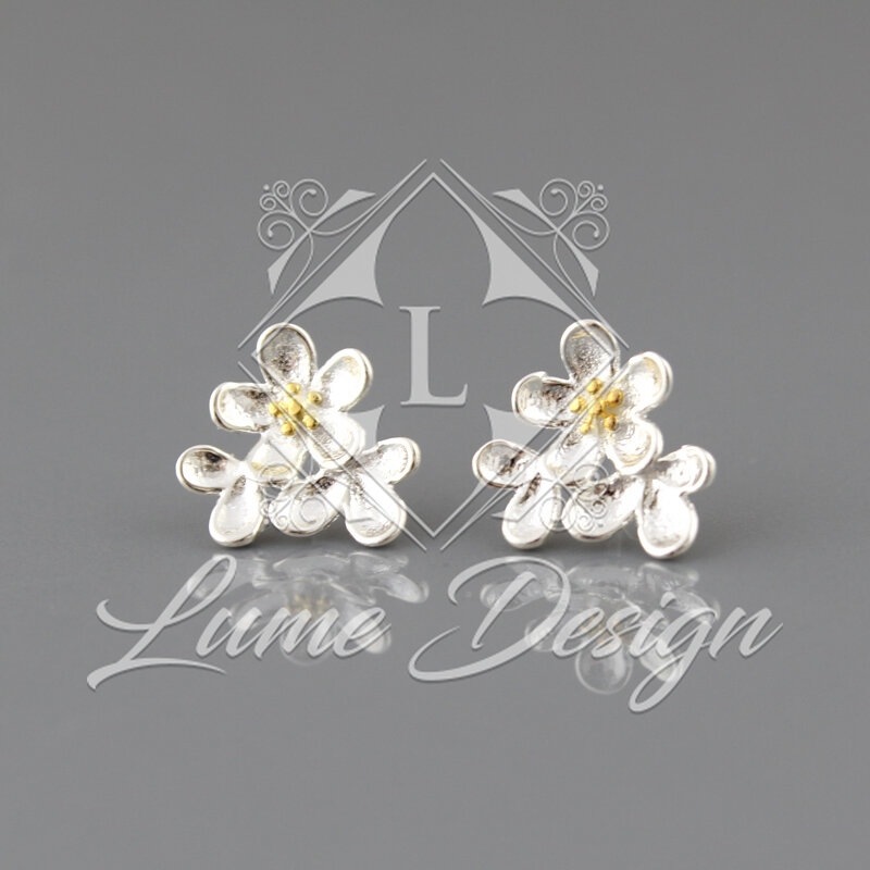 Dwukolorowe kolczyki sztyfty w kształcie kwiatów.