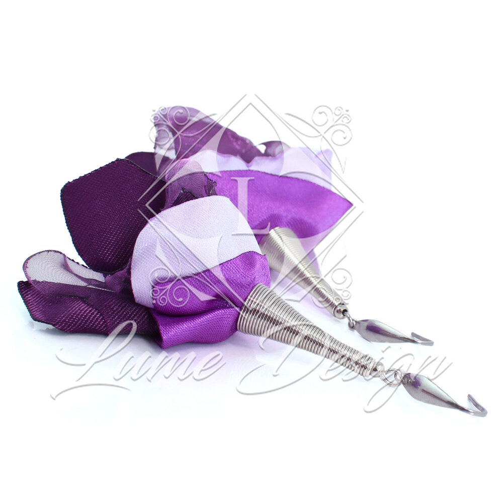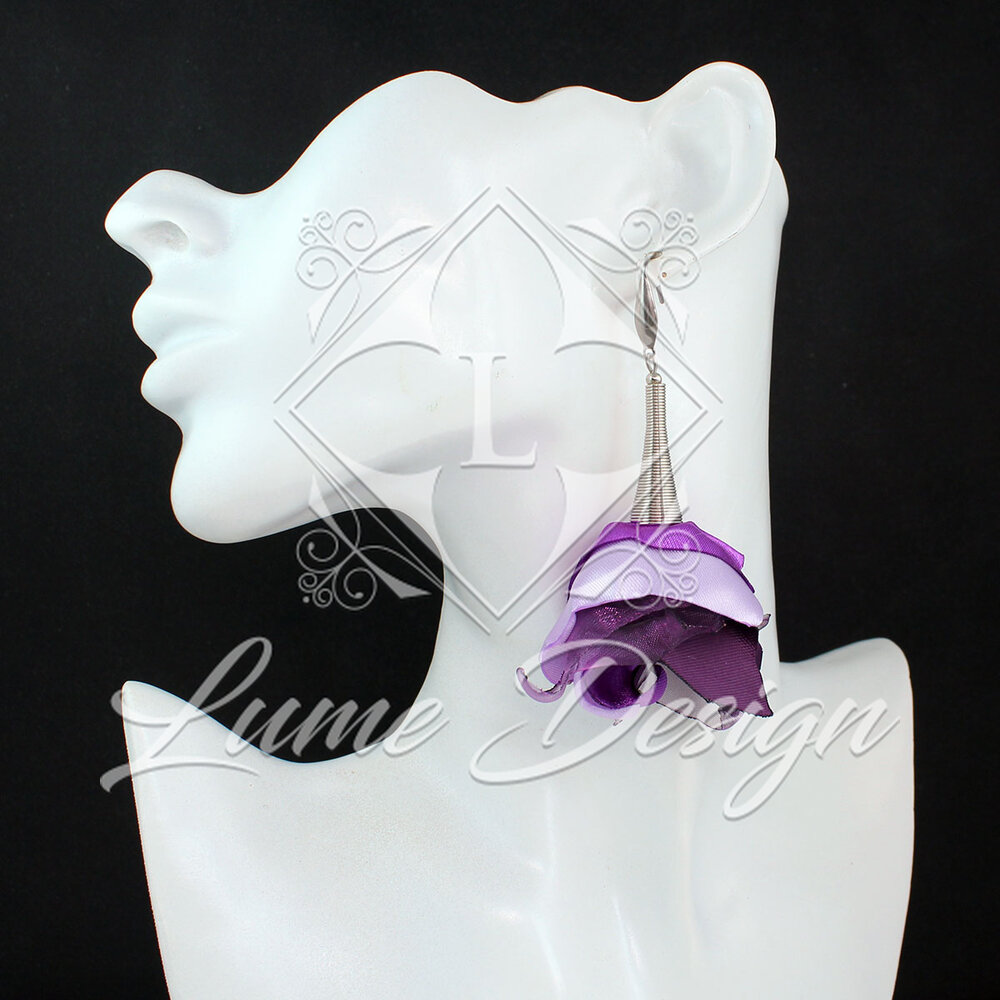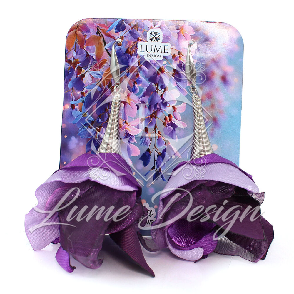 Długie kolczyki z tkaniny w odcieniach fioletu