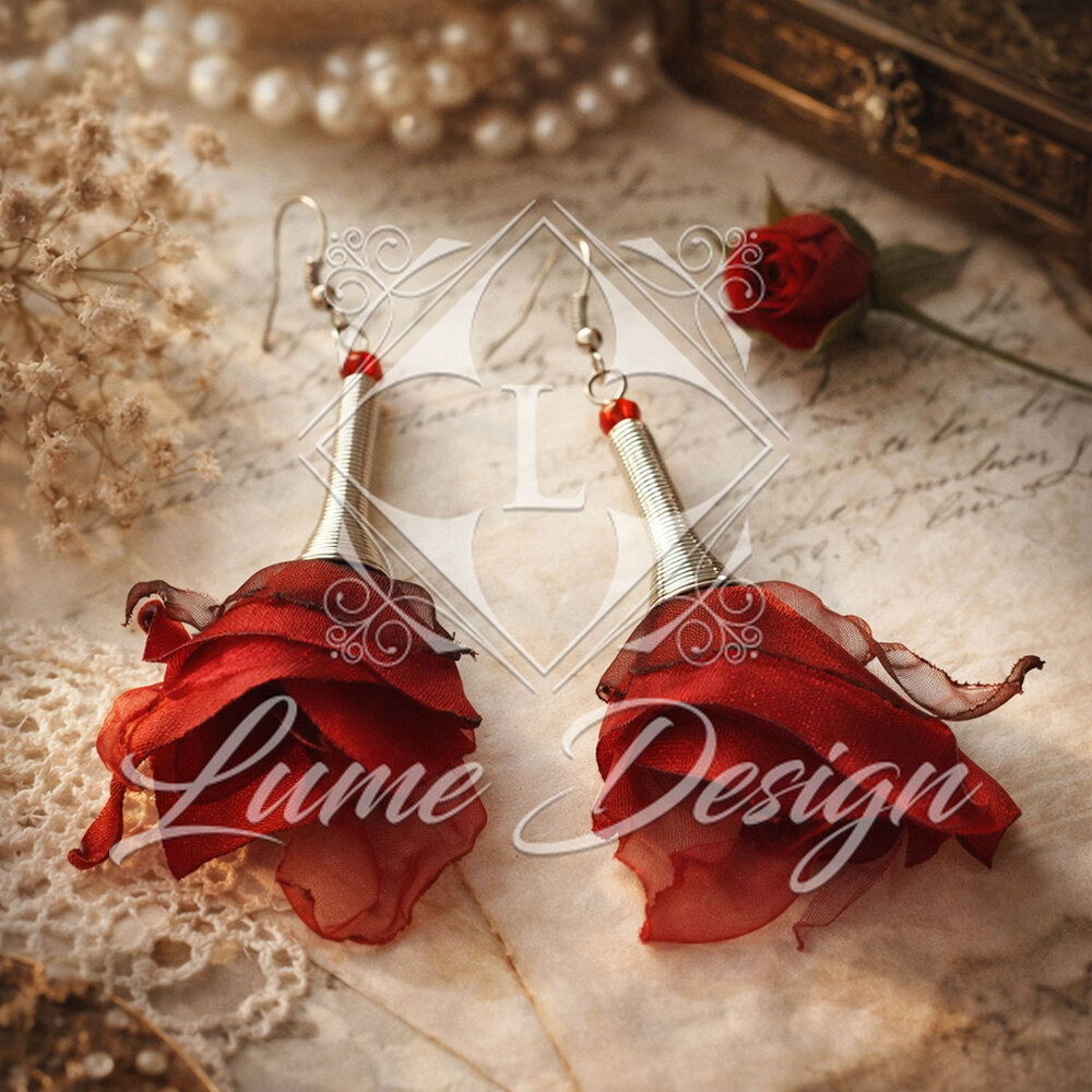 Każdy egzemplarz powstaje z dbałością o detal – tkanina cięta i modelowana ręcznie, a następnie opalana nad płomieniem. Ten proces nie tylko nadaje płatkom artystyczny, organiczny kształt, ale również zabezpiecza brzegi przed strzępieniem.