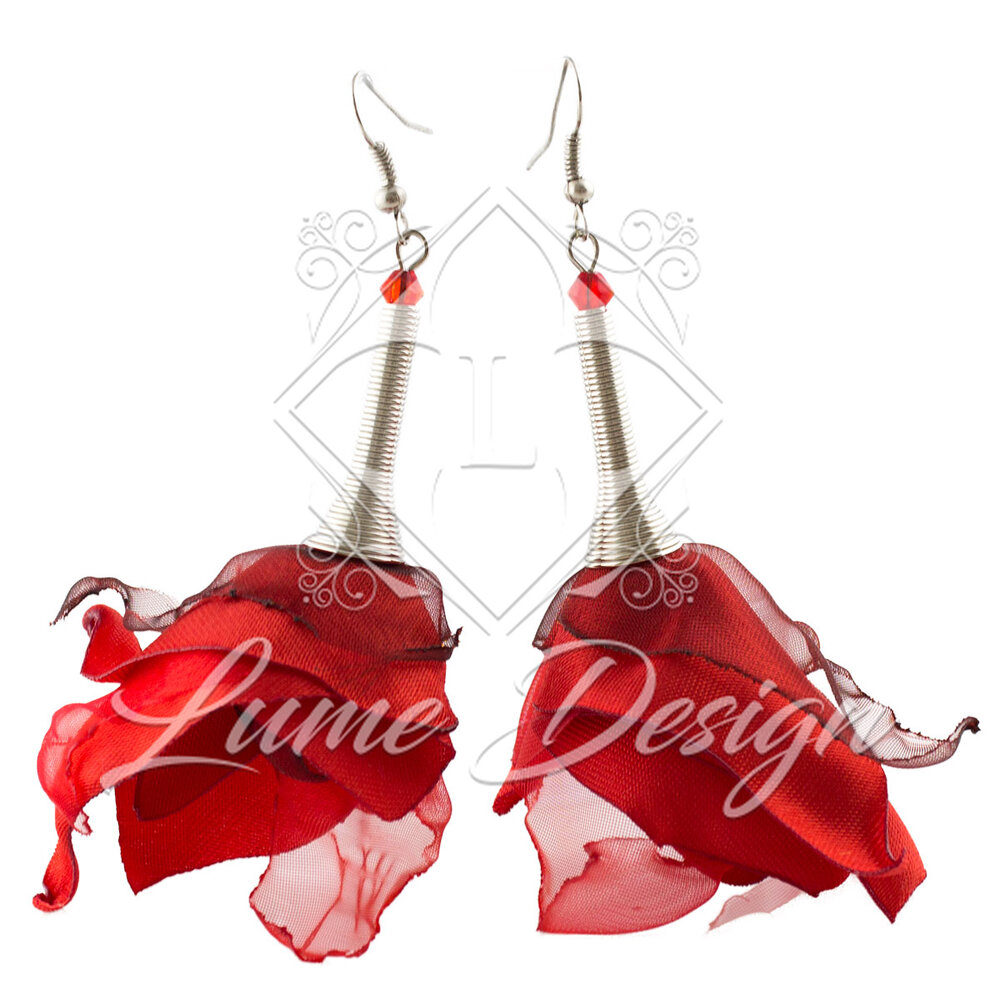 Kolczyki Wiszące Kwiaty Materiałowe Czerwone Flamenco Lekkie