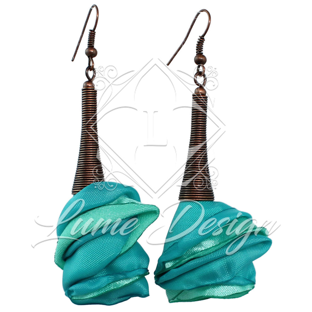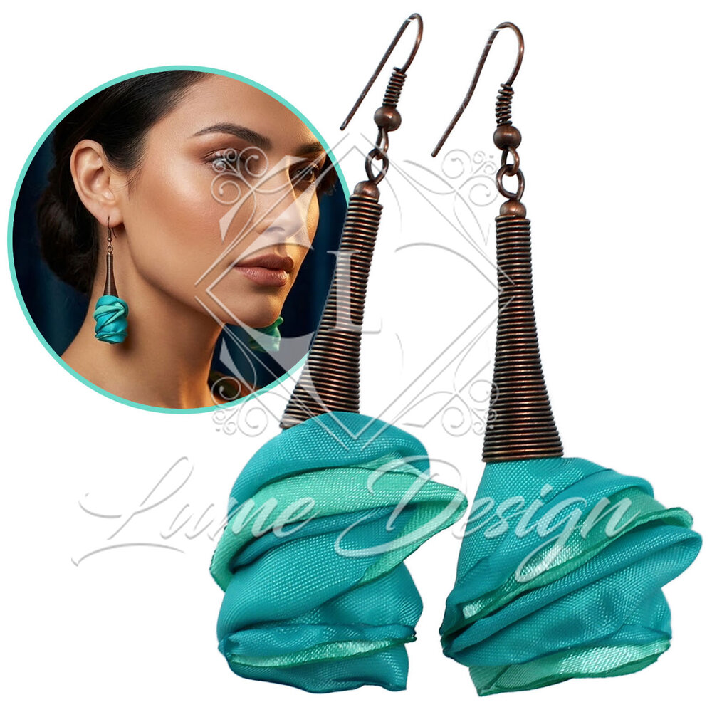 Kolczyki Wiszące Turkusowe Morskie Miedź Boho Długie Witchy