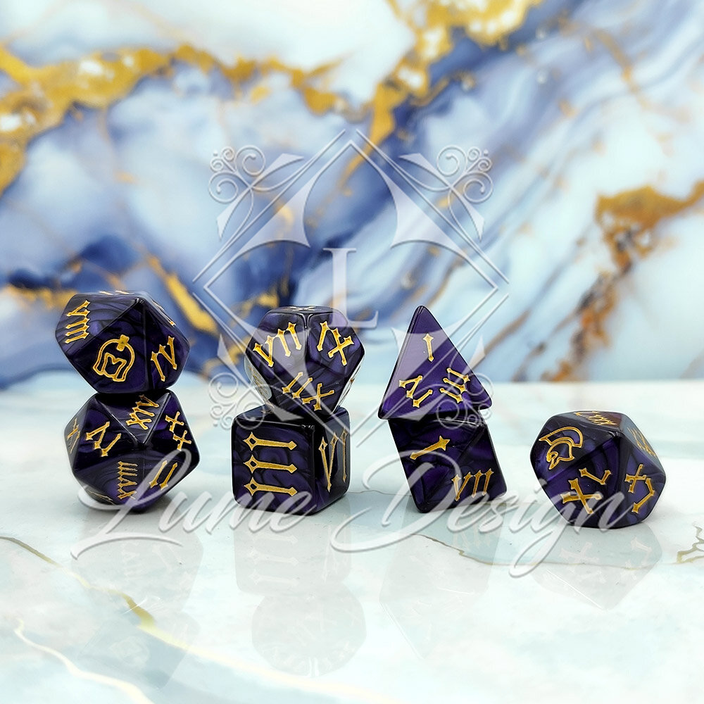 Zestaw kości RPG Roman Empire z cyframi rzymskimi fioletowe