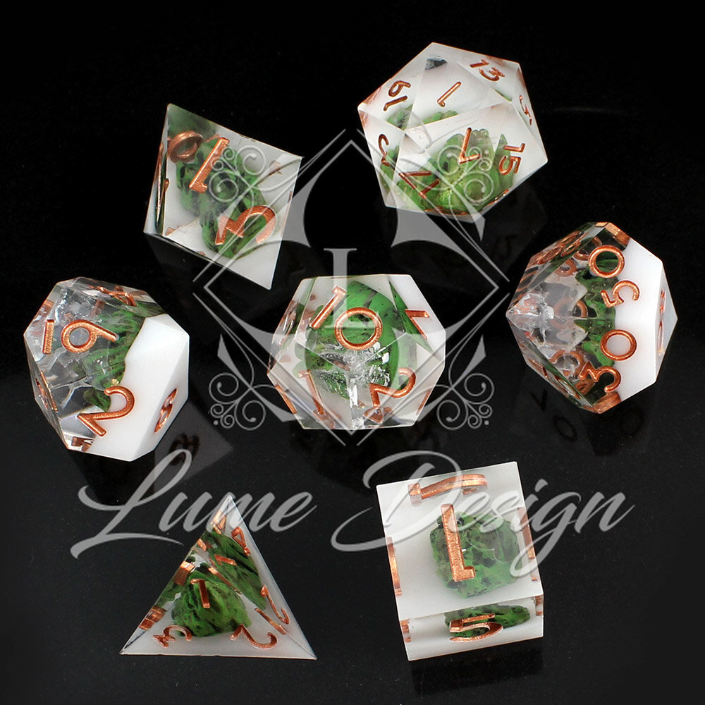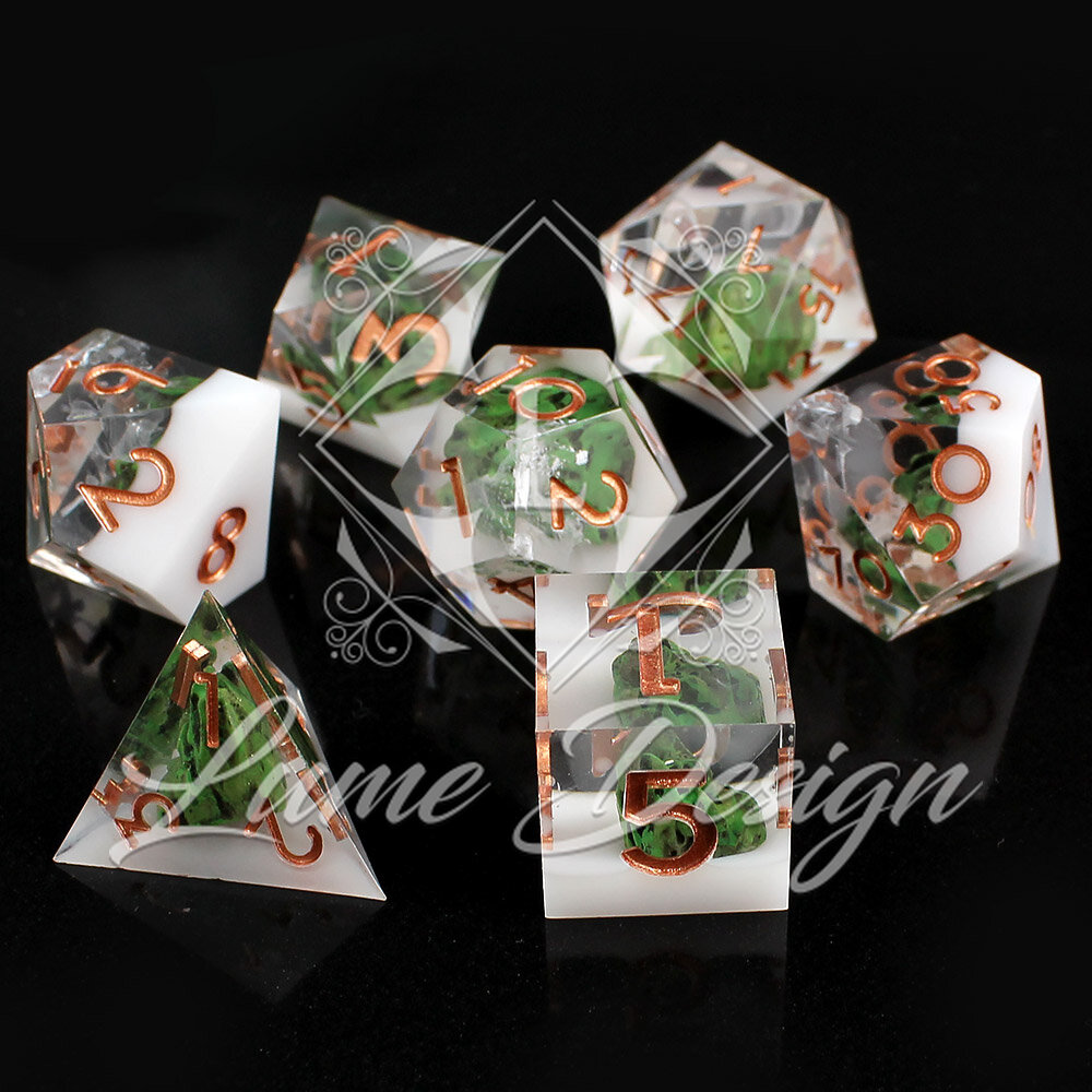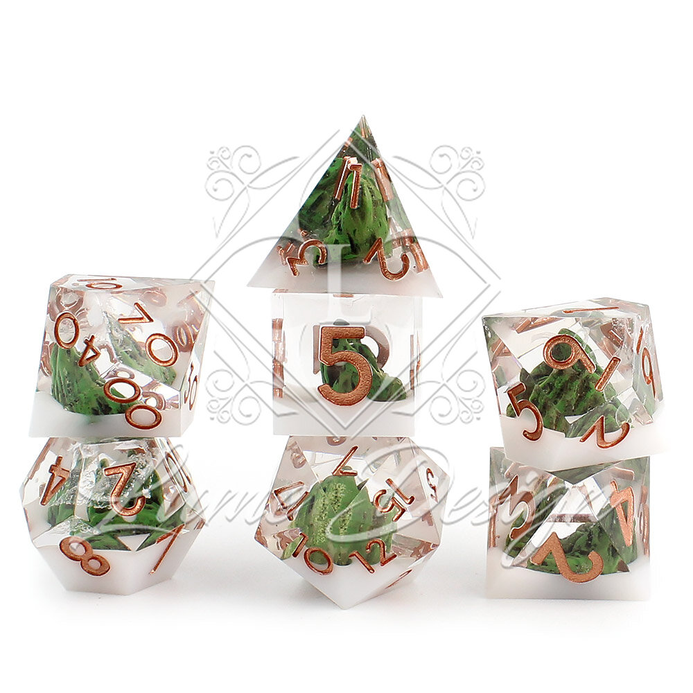 Zestaw 7 kości wielościennych do gier fabularnych RPG z wewnętrznym krajobrazem