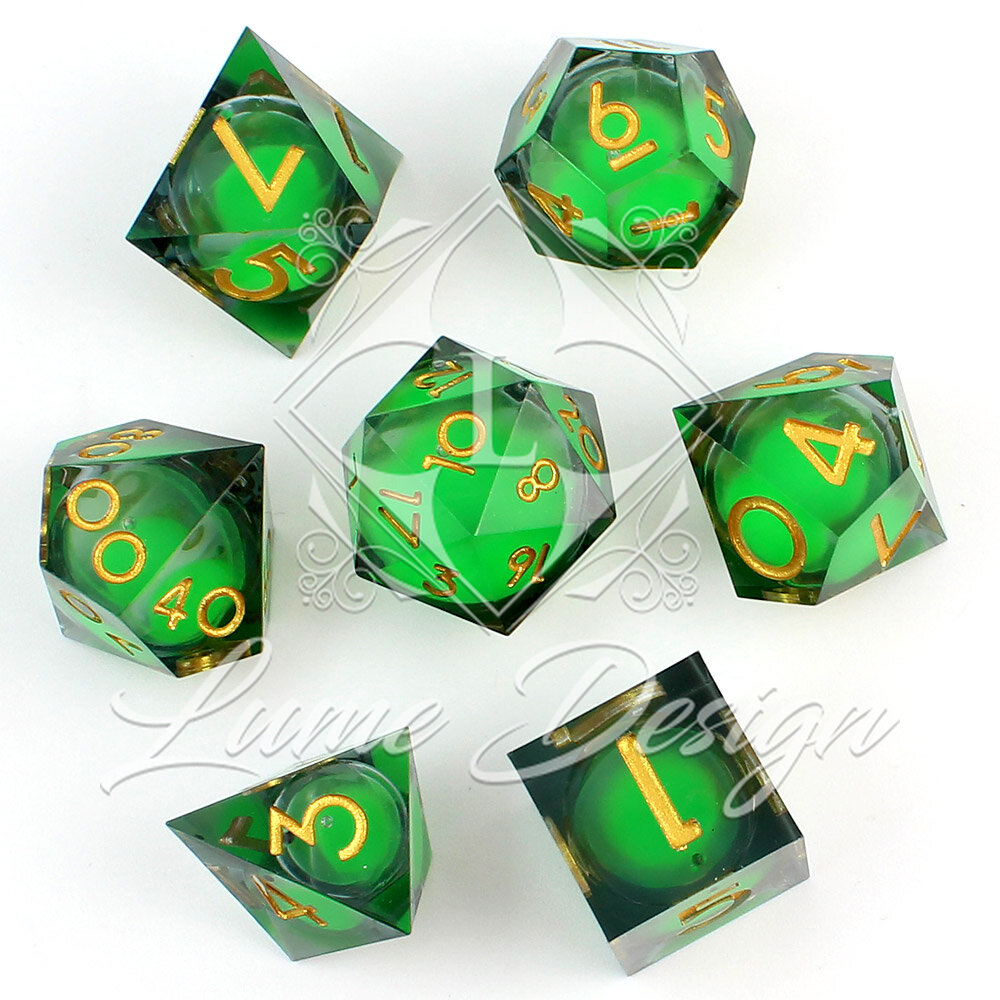 Kości RPG Epoksydowe Płynne Ostre Zielone Dnd Zestaw 7 Prezent