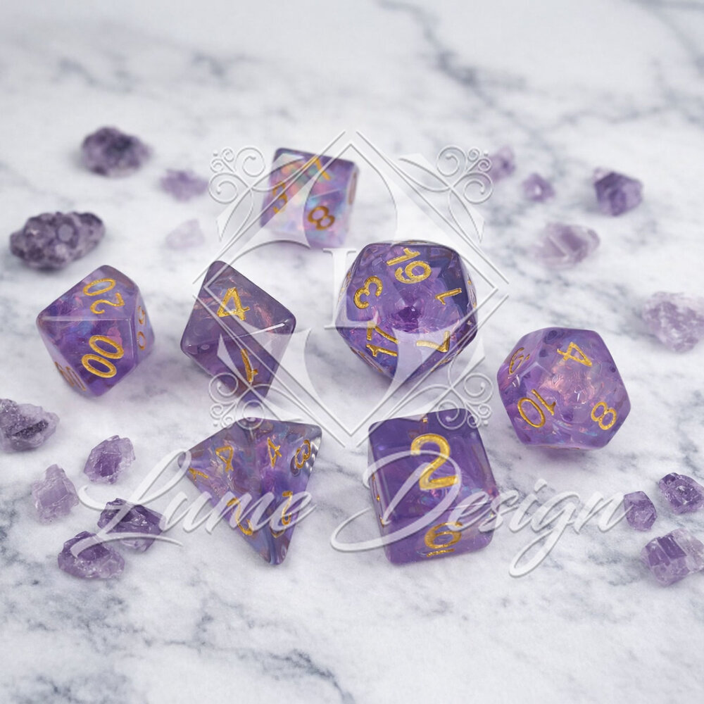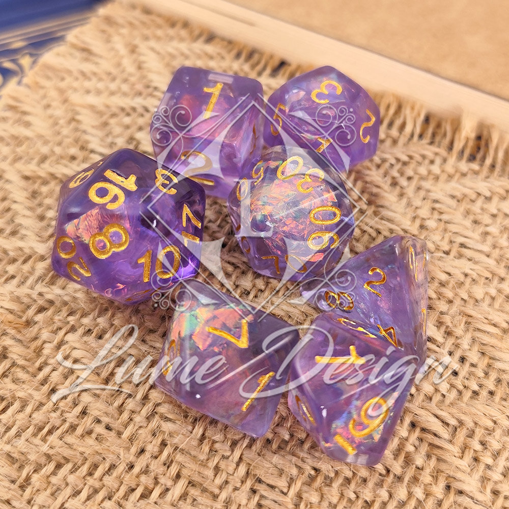 Kości RPG Fioletowe Holograficzne Zestaw DnD Akryl