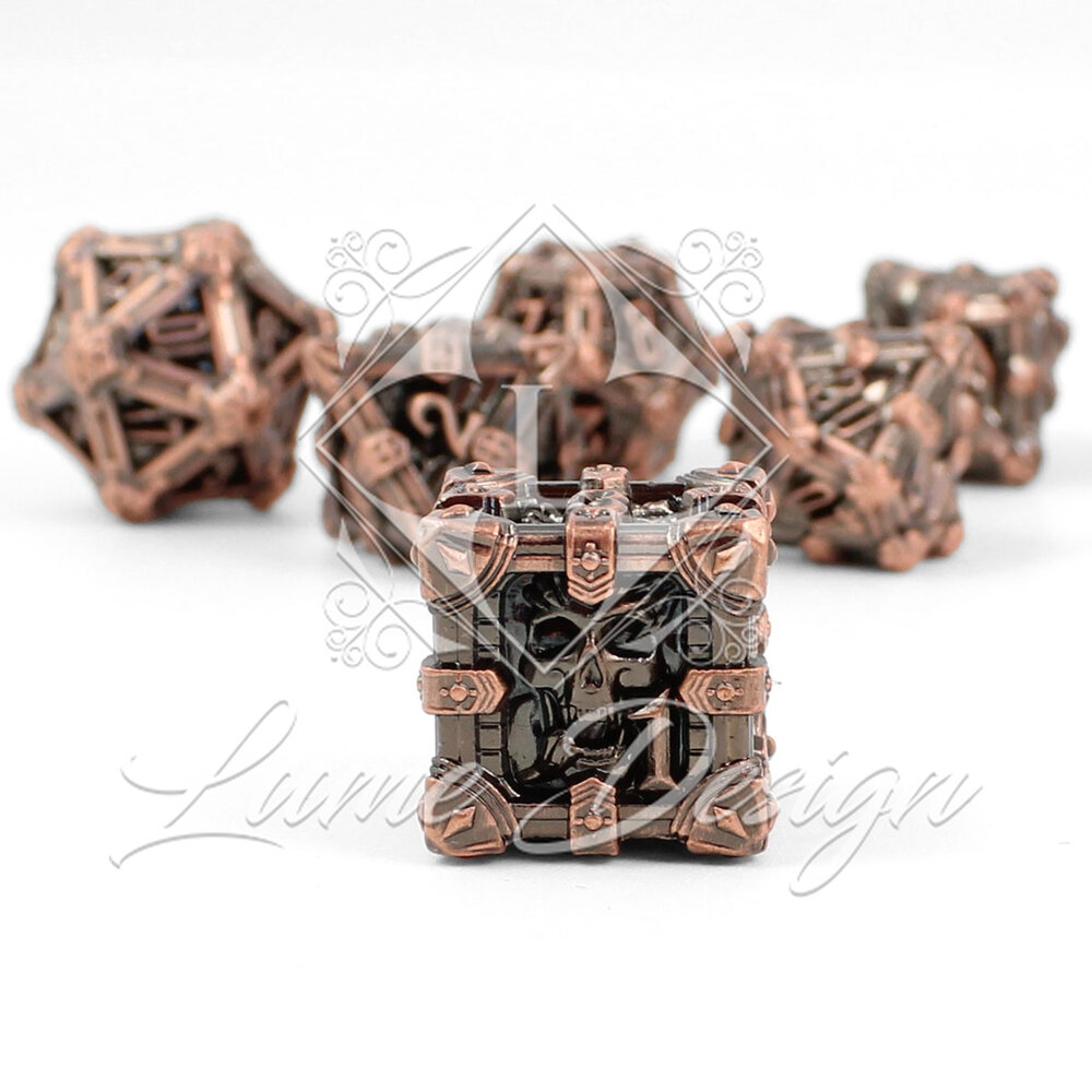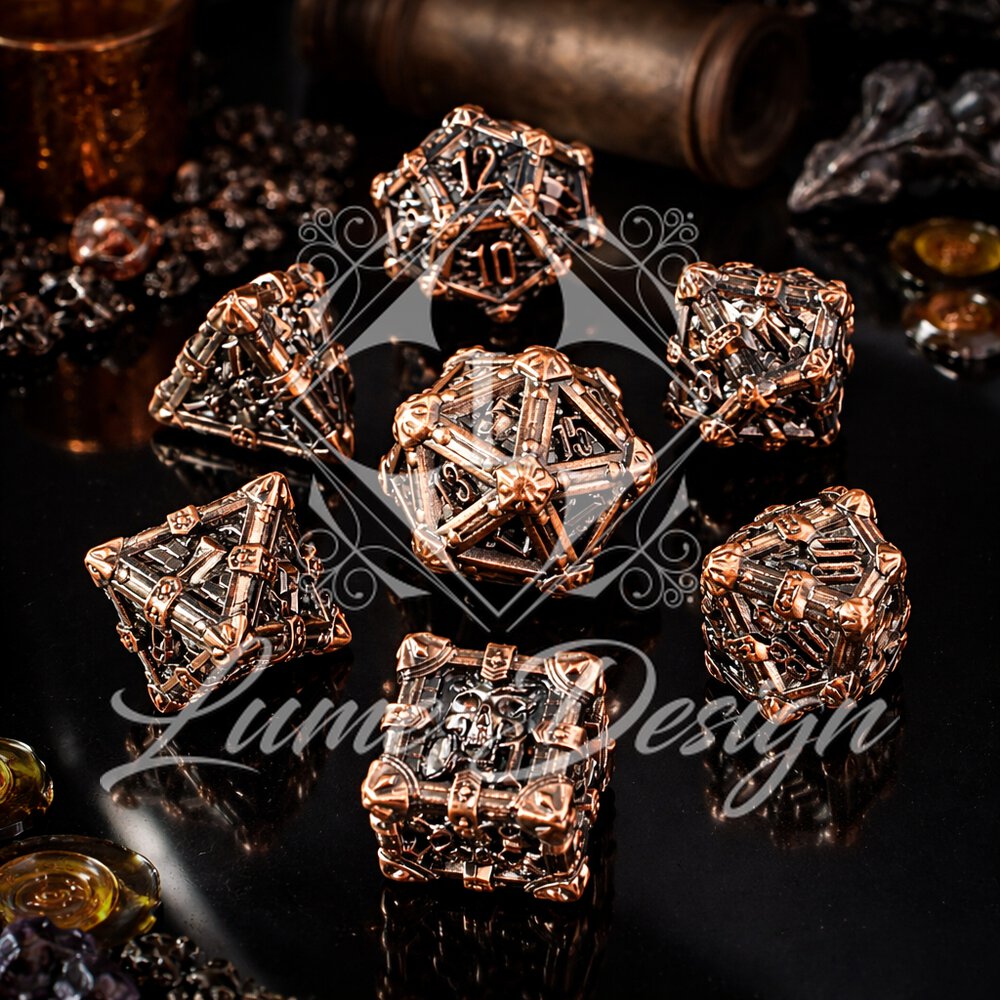 Kości RPG Metalowe Ciężkie Miedź Czaszki Zestaw DnD komplet kostki