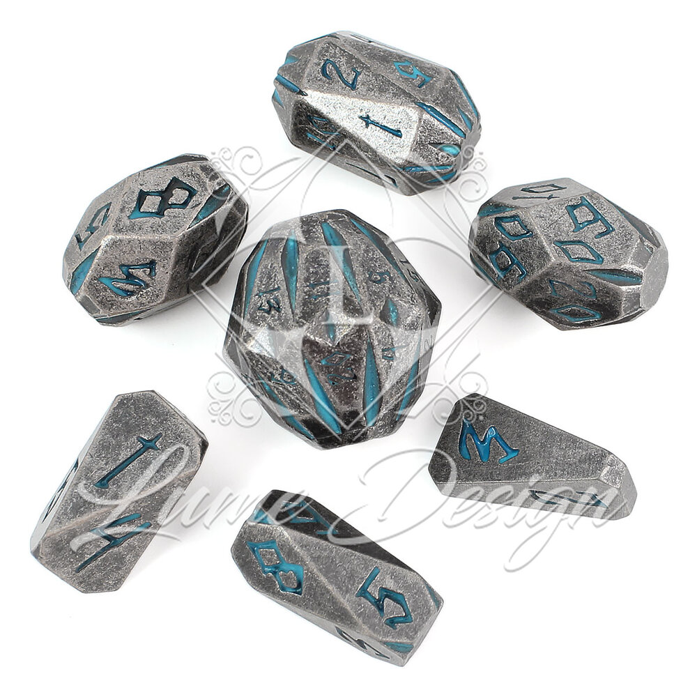 Kości RPG Metalowe Ciężkie Zestaw DnD Świecące w Ciemności prezent