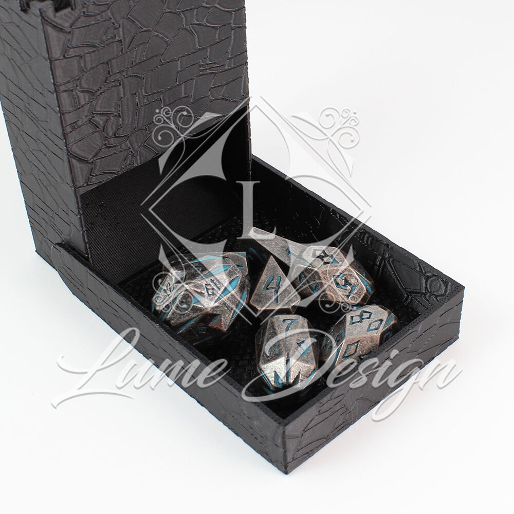 Zestaw pakowany jest w pudełko kartonik – kolor i wzór dobierany tak, by pasował do estetyki kości. Gotowe na prezent wydanie dla prawdziwego fana RPG.