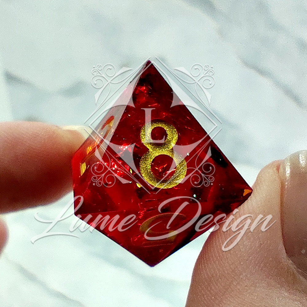 Kości RPG Ostre Krawędzie Żywiczne Krwiste Złote