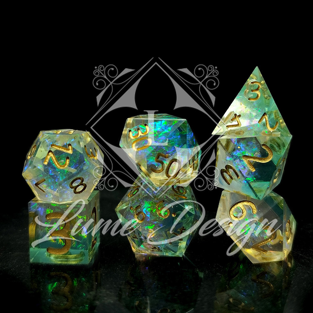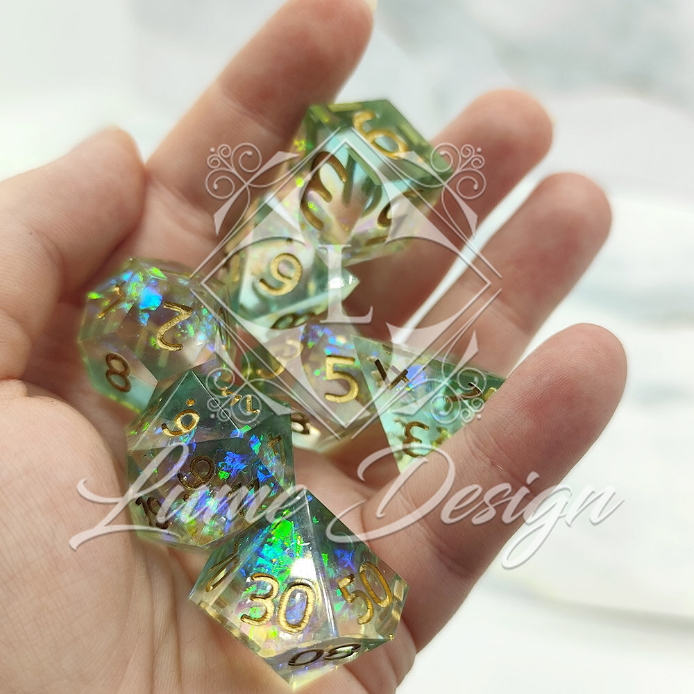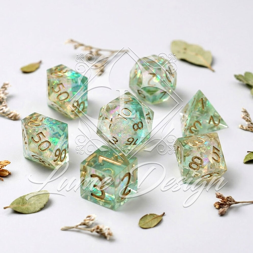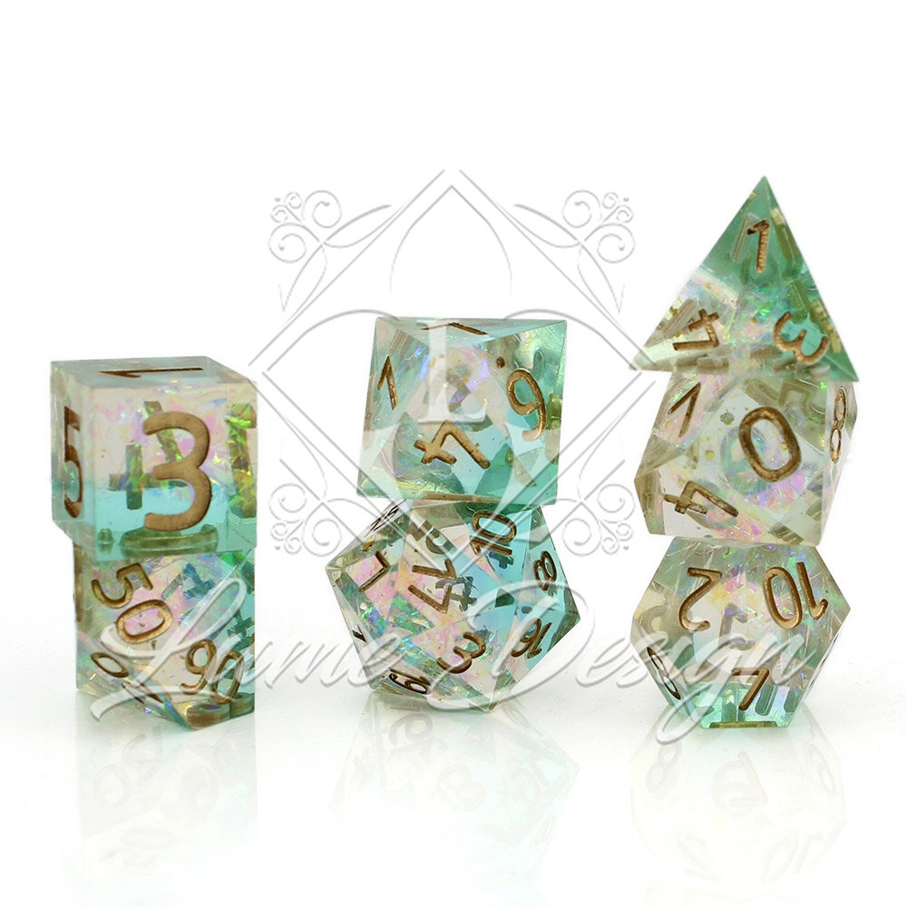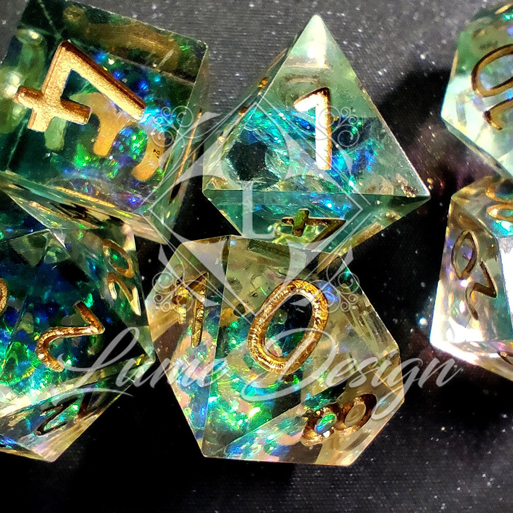Kości RPG Sharp Edge Żywica Miętowe Holograficzne Złote