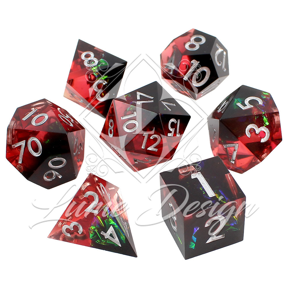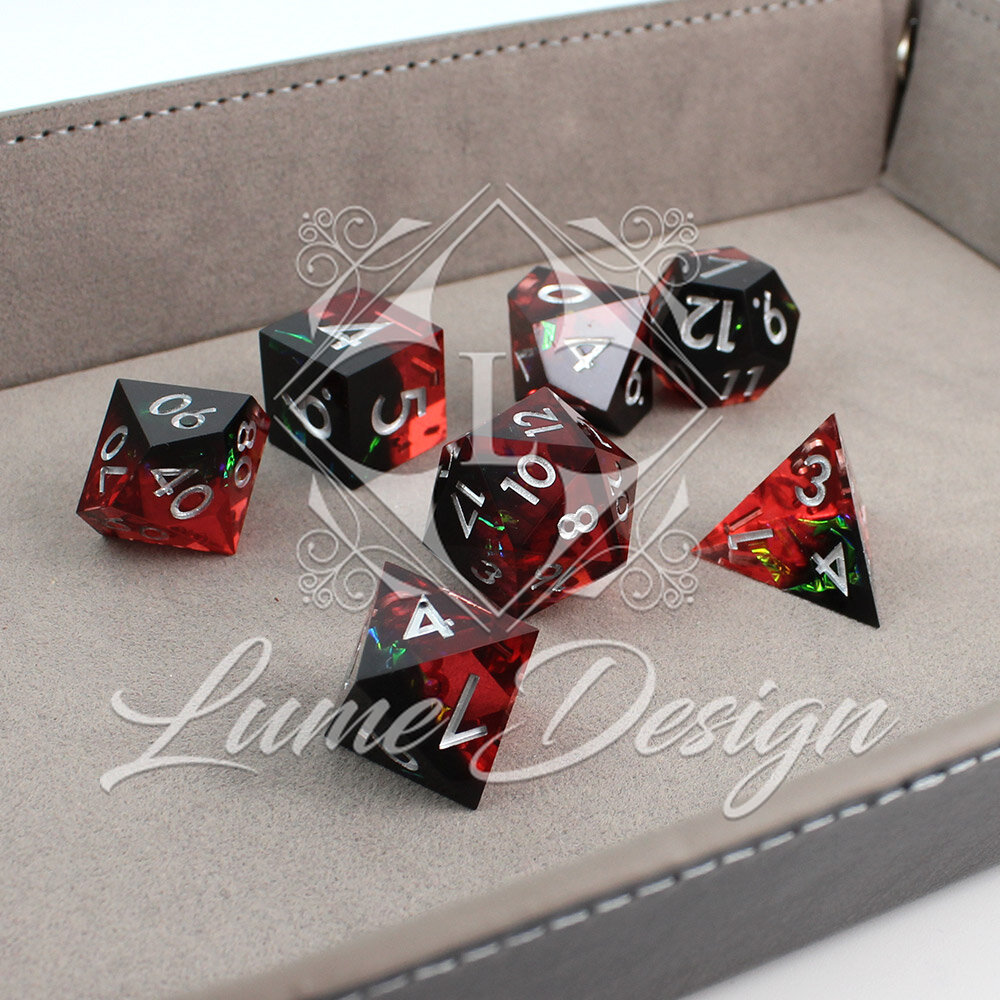 Kości RPG Żywica Czarno-Czerwone DnD Zestaw 7 Prezent Ostre