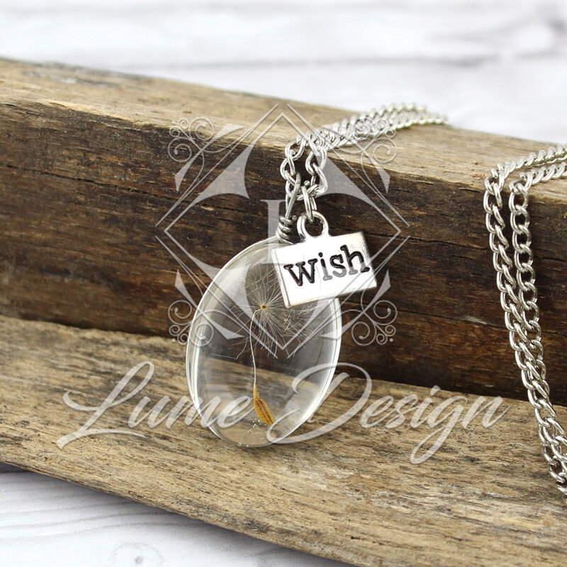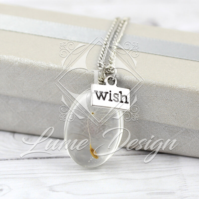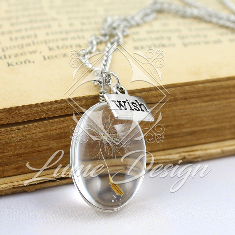 Piękny, delikatny naszyjnik z prawdziwym ziarnem dmuchawca zamkniętym w szkle.