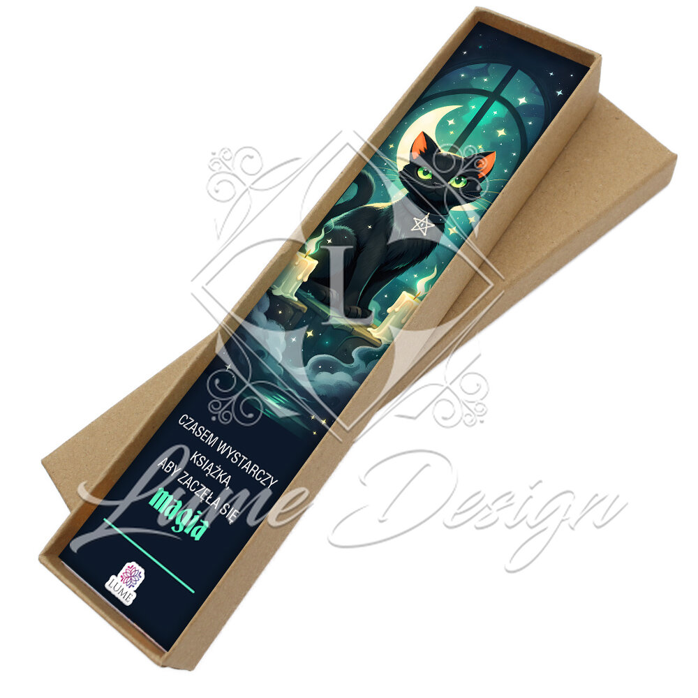 Cechy produktu Zakładka do książki czarny kot księżyc Halloween witchy magia