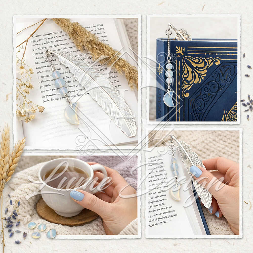 Zakładka z zawieszką z Opalitu charakteryzuje się wyjątkową lekkością i smukłą formą. Została zaprojektowana z myślą o czytelnikach ceniących subtelne akcesoria, które nie obciążają stron i idealnie przylegają do grzbietu książki. To doskonały wybór do delikatnych wydań, planerów oraz drobnych notesów.