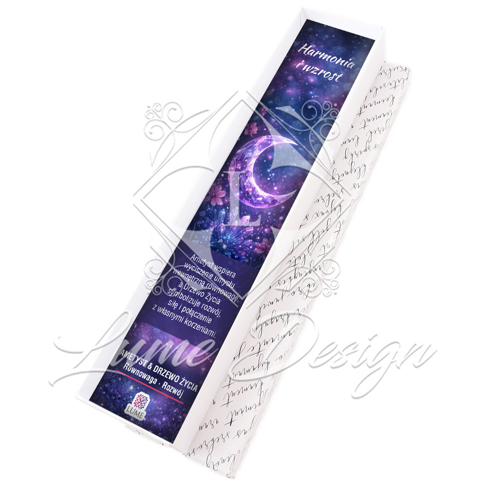 "Harmonia i wzrost. Ametyst wspiera wyciszenie umysłu i wewnętrzną równowagę, a Drzewo Życia symbolizuje rozwój, siłę i połączenie z własnymi korzeniami."
