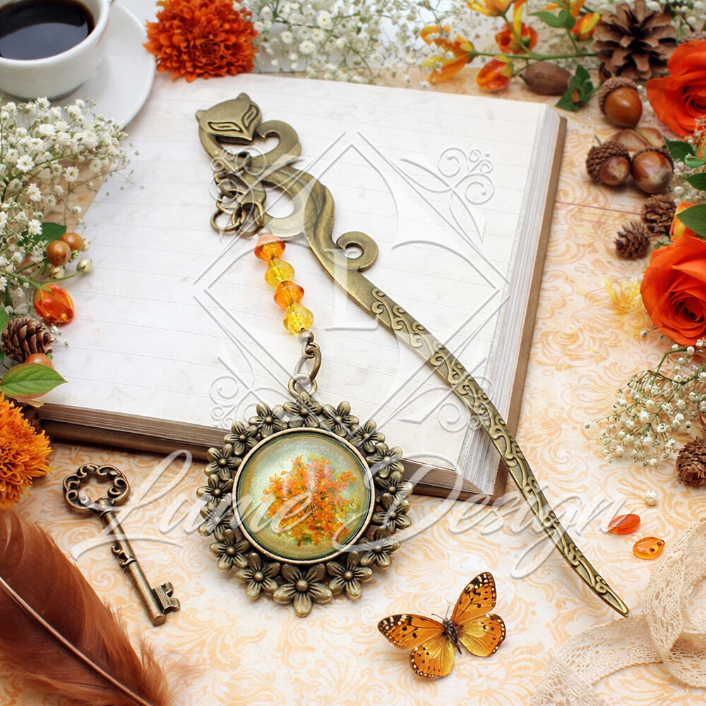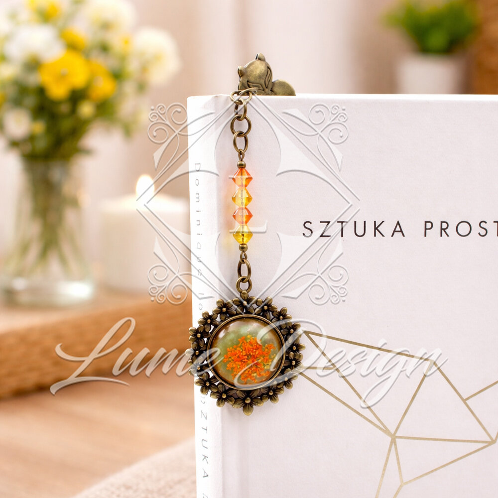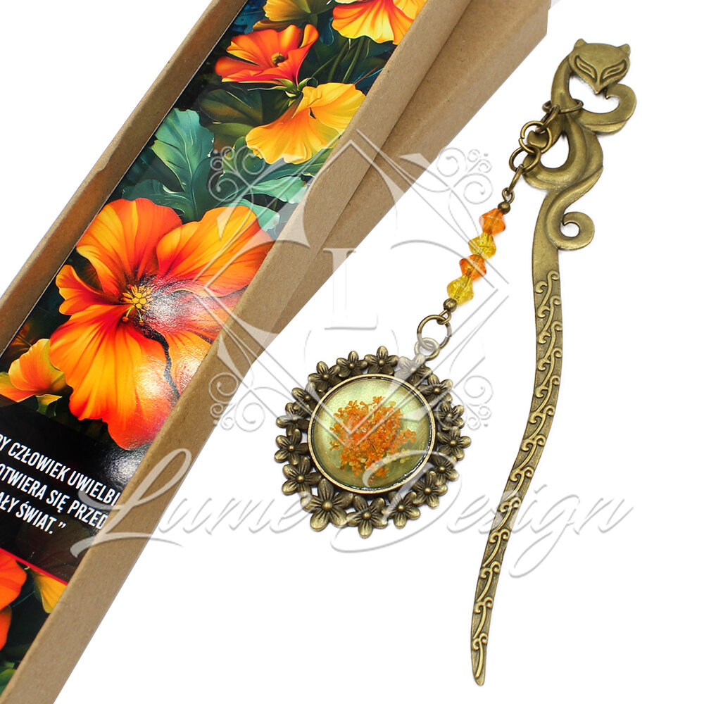 Zakładka do książki z kwiatami żywica vintage lisek na prezent