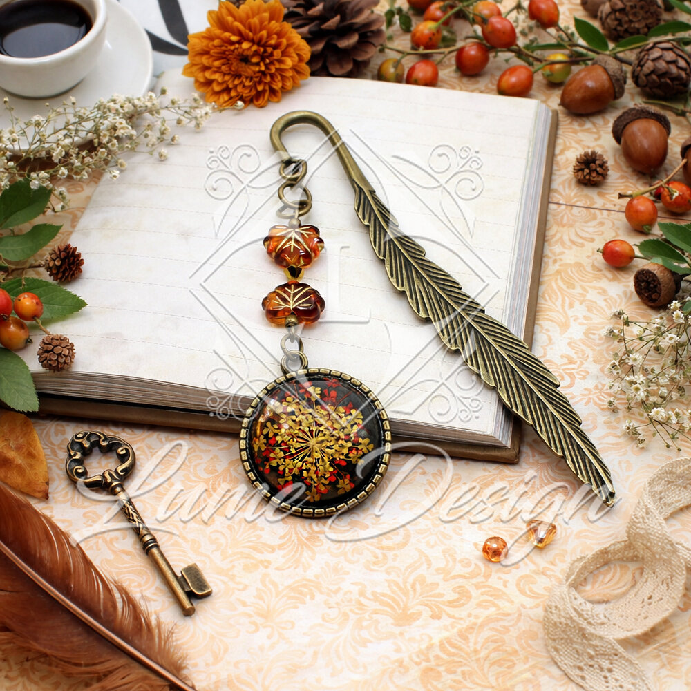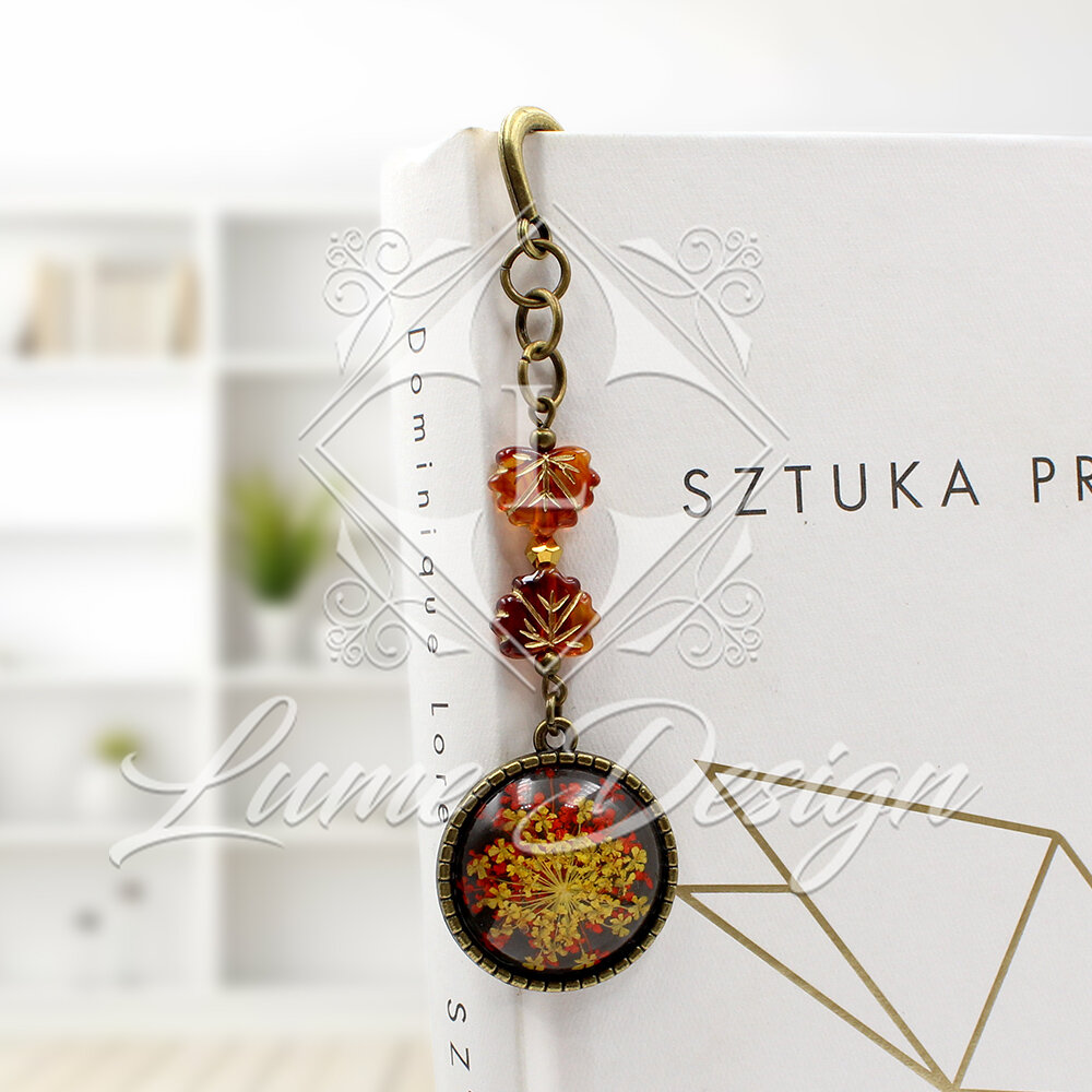 Zakładka do książki z prawdziwymi kwiatami jesienna upominek